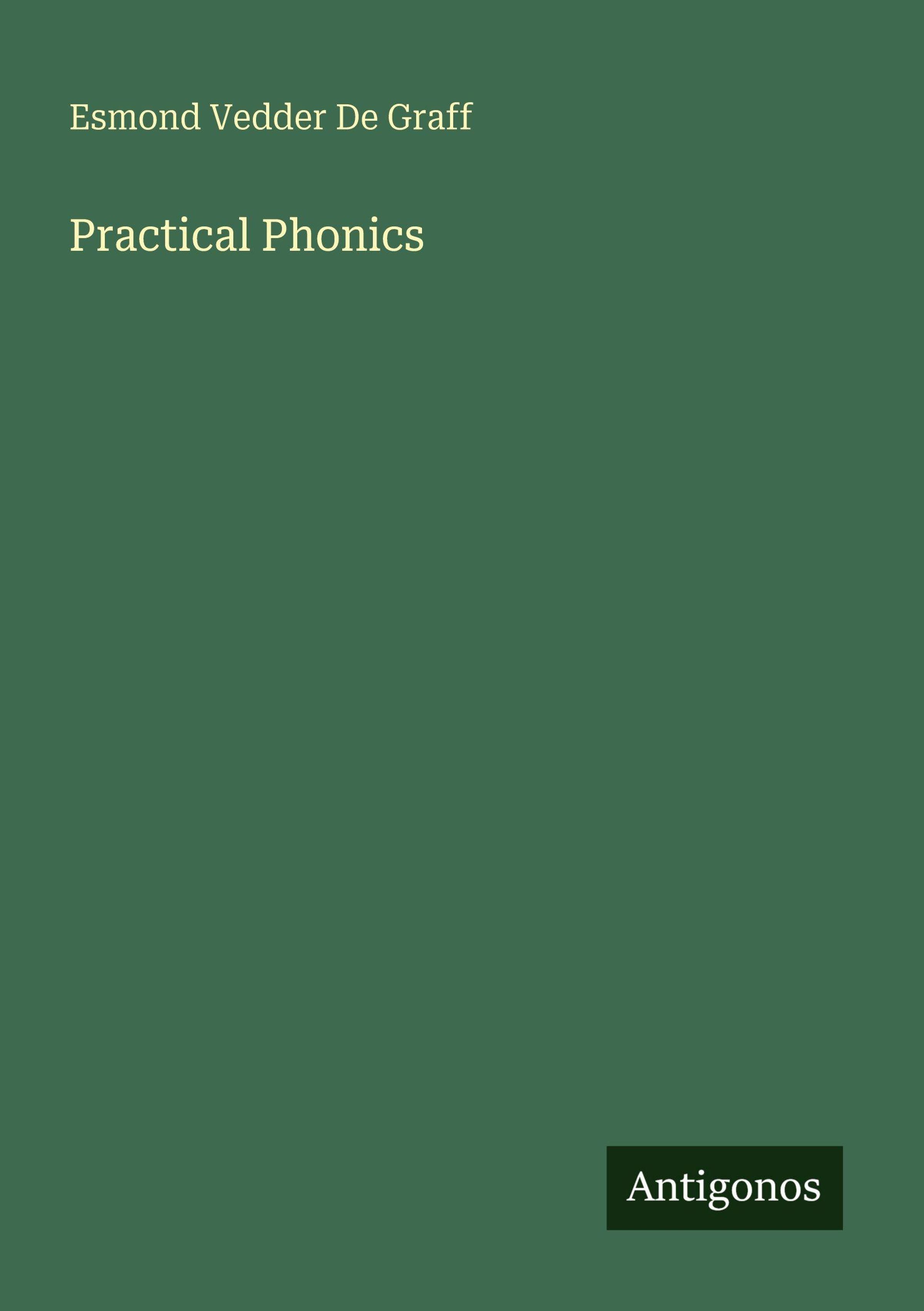 "Esmond Vedder De Graff, Practical Phonics." Grünes Cover, schlichte Typografie. "Antigonos" am unteren Rand., Buch
