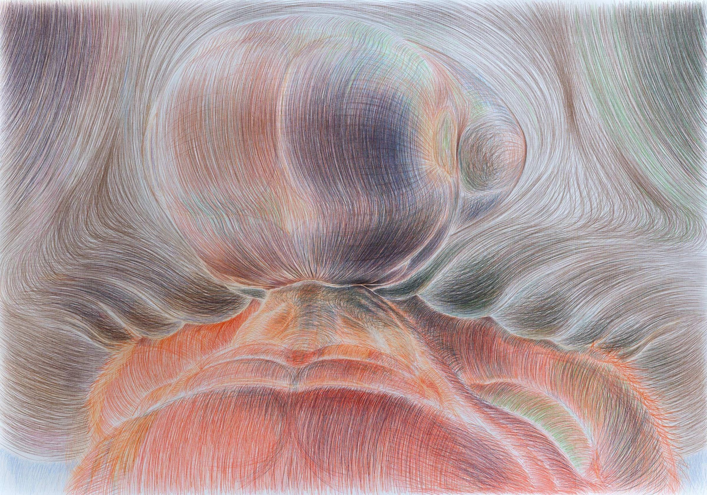 Pieter Slagboom's drawings are about life and death. About how these ostensible antagonists are inseparable; how, in his imagination, they are even fused. In his enormous canvases, we are held by the essence of our existence as though by a steel vise: we come from the void and in the end shall return to it. Thousands upon thousands of sweeping lines, twisting like Moebius strips, make for an almost physical experience of this truth. The dead and the newborn emerge from the primeval soup of Slagboom's lines, as do genitals; we spot larger-than-life fantasies of disturbing sexual acts. The circle of life as a short circuit. The energy of some of the pictures in Slagboom's oeuvre is almost too much to bear-we shudder before the pigments materializing our latent knowledge: that death is suspended in life.