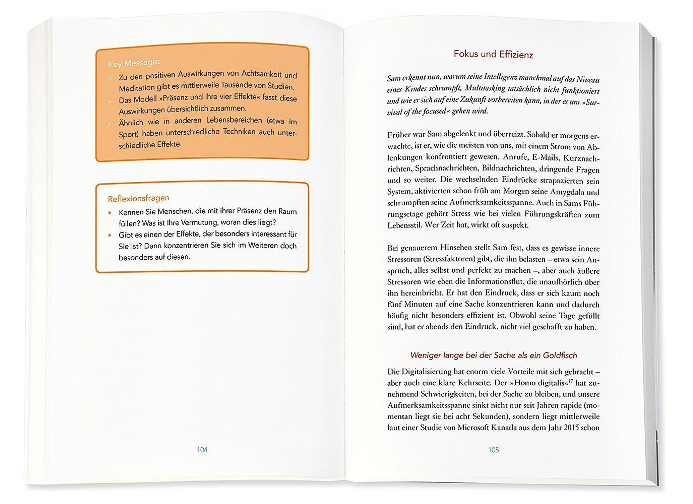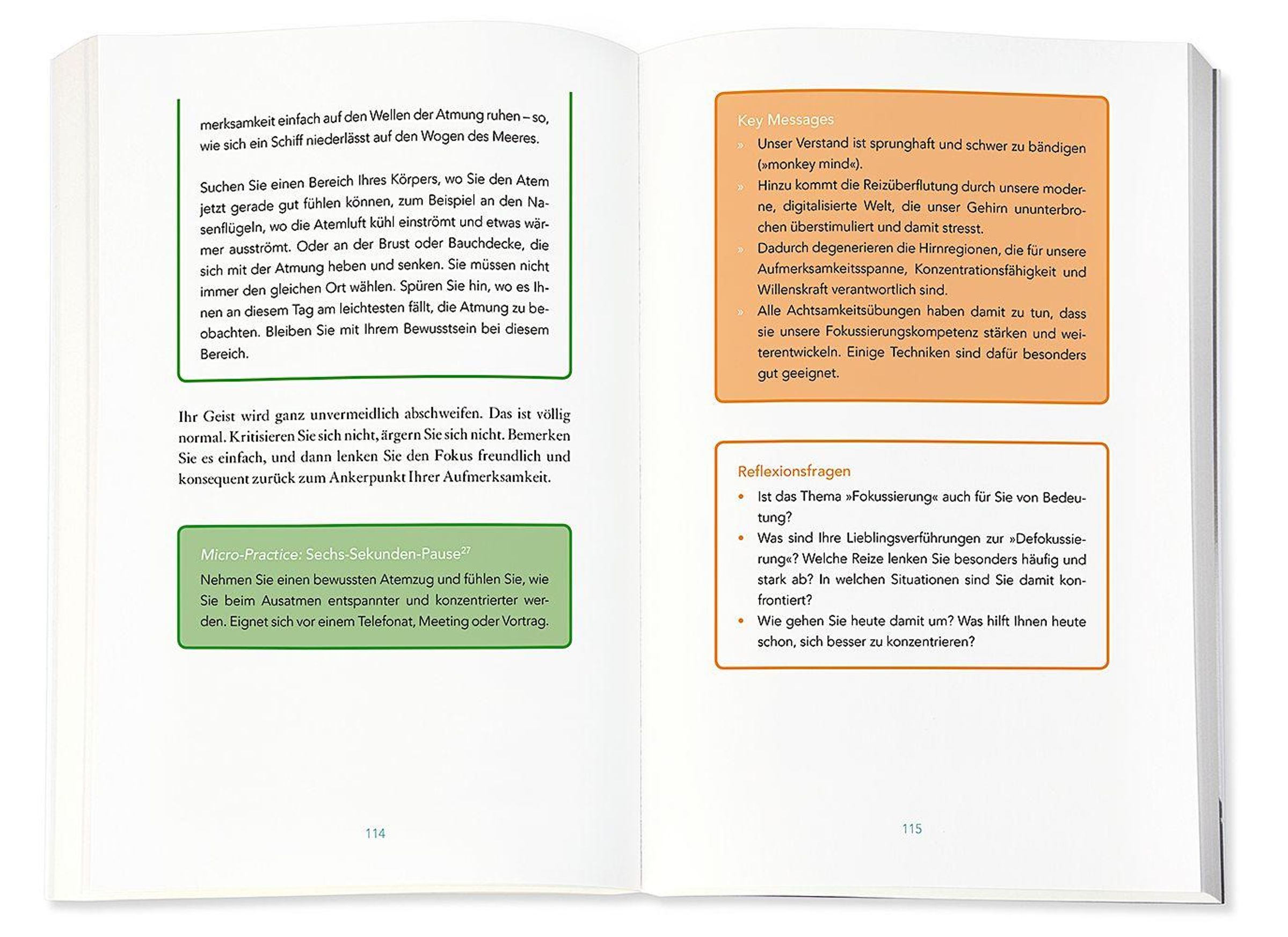 Basierend auf den neusten Erkenntnissen der Neurowissenschaft und Hirnforschung zeigt dieser Ansatz, wie man neuronale Muster verändern kann, und man erfährt, wie man sich selbst und andere effizient und zugleich empathisch führen kann. Und sicher ist: Selbstführung und soziale Kompetenz sind die Schlüsselfaktoren in der modernen Arbeitswelt. Meditation und Achtsamkeit sind ein bedeutender Teil echten Change Managements in der Personalführung von immer mehr Unternehmen