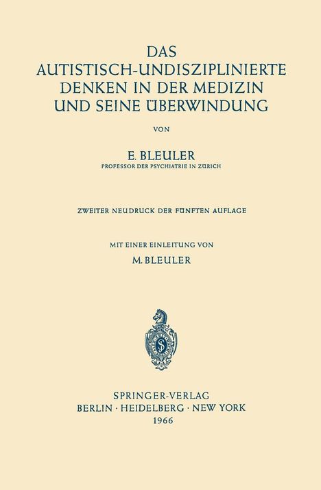 Der Artikel Eugen Bleuler: Das Autistisch-Undisziplinierte Denken in der Medizin und Seine Überwindung wurde in den Warenkorb gelegt.