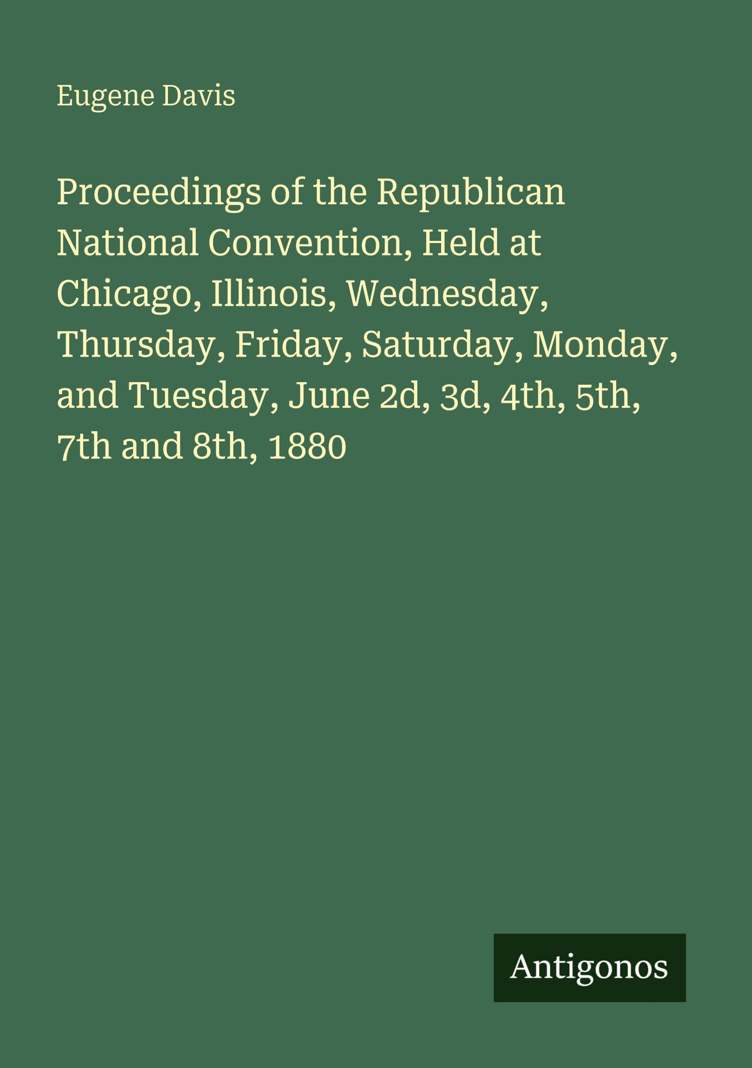 Proceedings of the Republican National Convention, Held at Chicago, Illinois, Wednesday, Thursday, Friday, Saturday, Monday, and Tuesday, June 2d, 3d, 4th, 5th, 7th and 8th, 1880