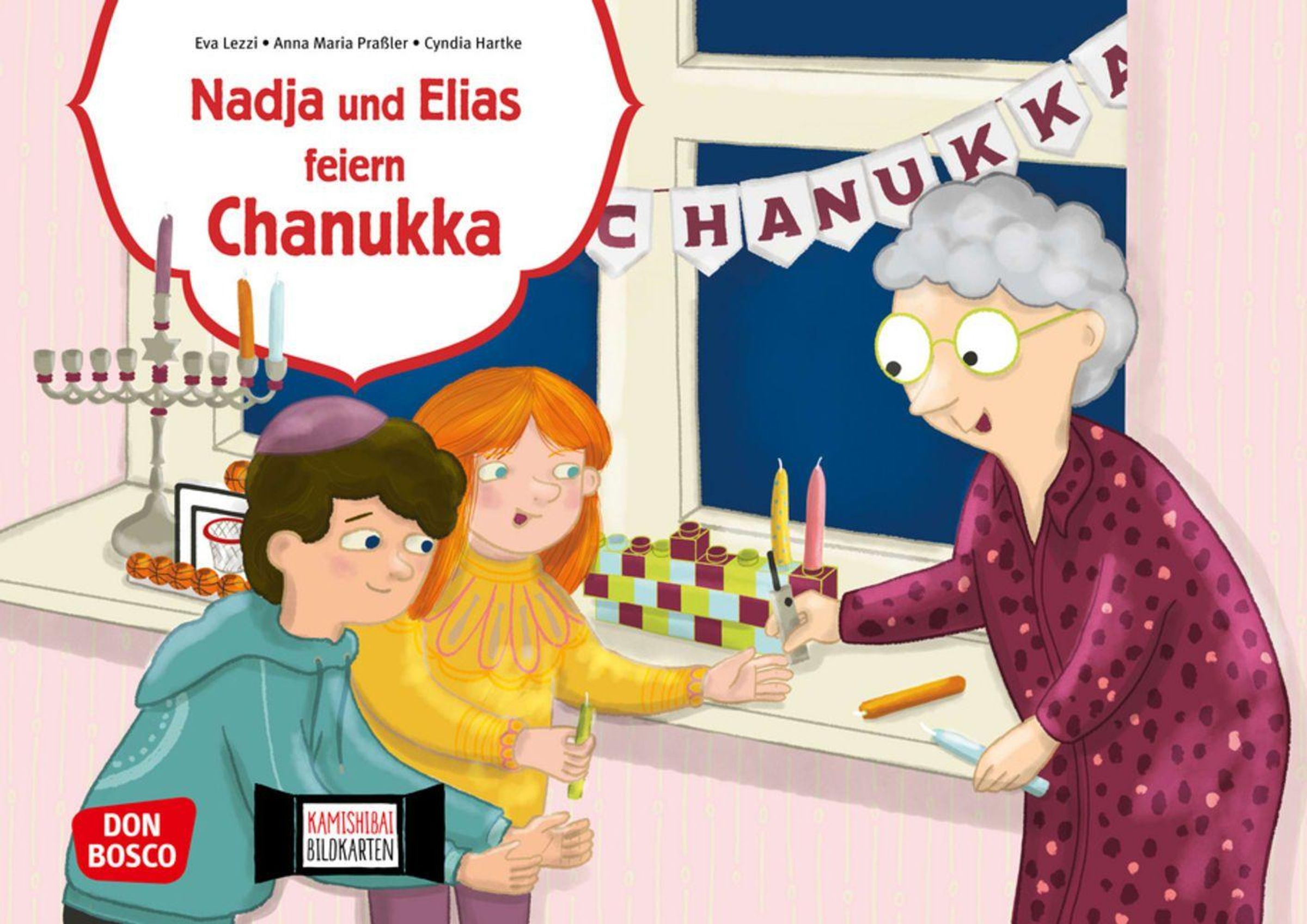 Elias taucht bei seiner Freundin Nadja in die Welt der jüdischen Bräuche ein: Er darf beim Anzünden der Kerzen auf dem Chanukka-Leuchter dabei sein, erfährt die Geschichte aus der Bibel von der Tempelweihe und dem Wunder des Lampenöls. Die Kinder probieren köstliche Sufganiyot und erleben, wie an jedem der acht Tage eine weitere Chanukka-Kerze die winterliche Dunkelheit vertreibt. Der Aufbau des Kamishibai-Theaters mit seinem aufstellbaren Rahmen eignet sich perfekt für die Präsentation der Geschichte von Elias und Nadja.