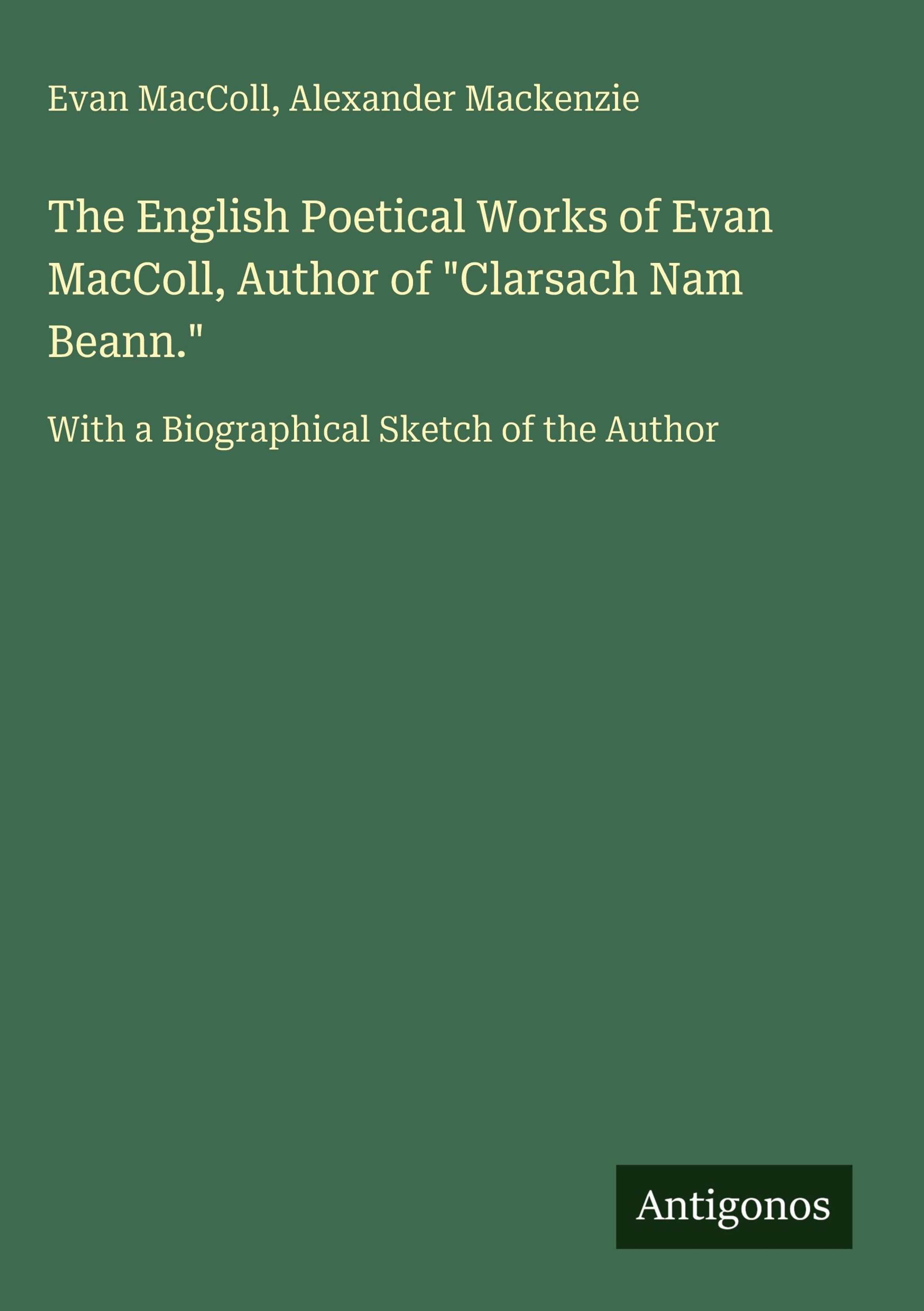 The English Poetical Works of Evan MacColl, Author of "Clarsach Nam Beann."