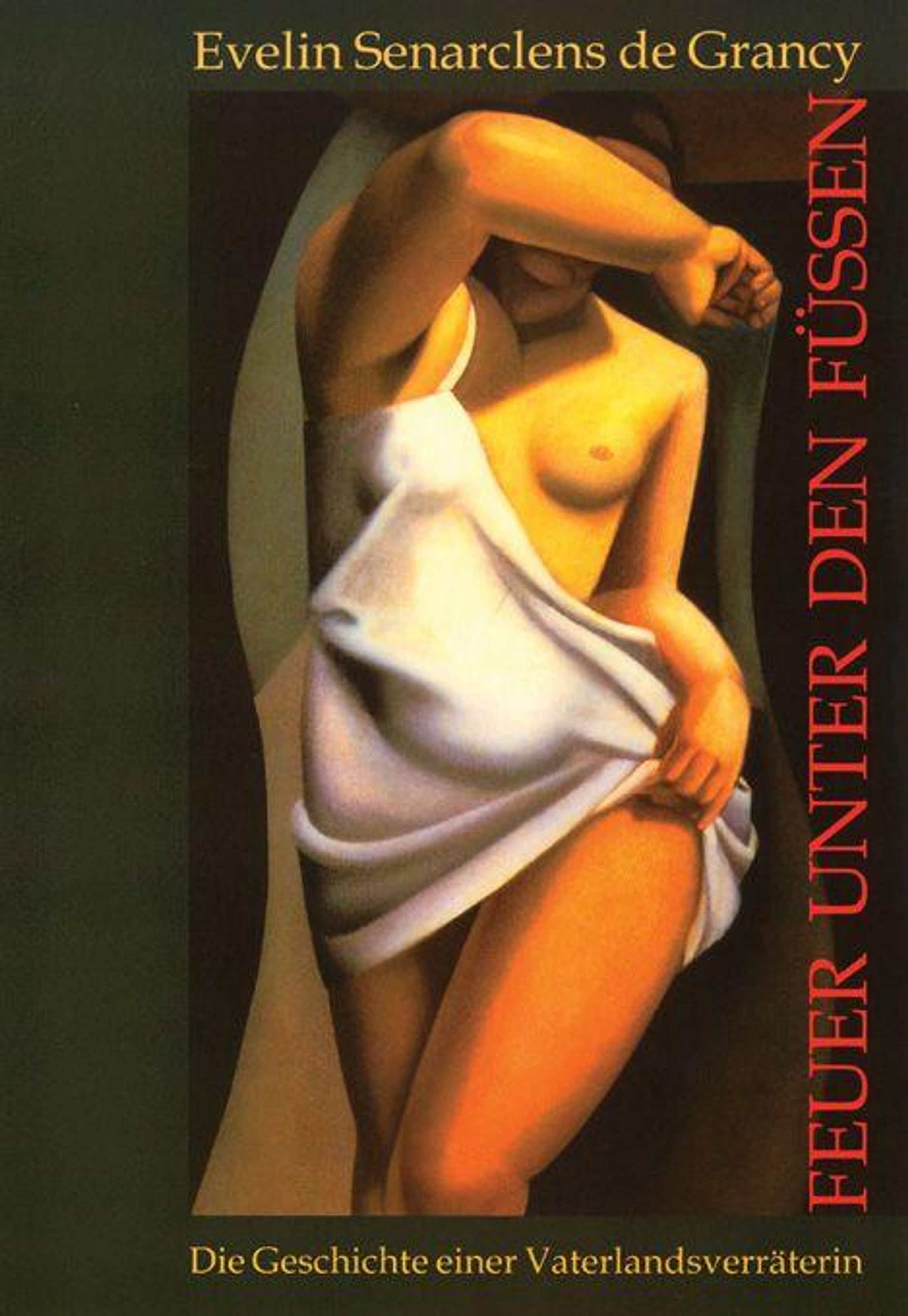 "Evelin Senarclens de Grancy", "Feuer unter den Füßen", "Die Geschichte einer Vaterlandsverräterin". Illustration einer nackten Frau., Buch