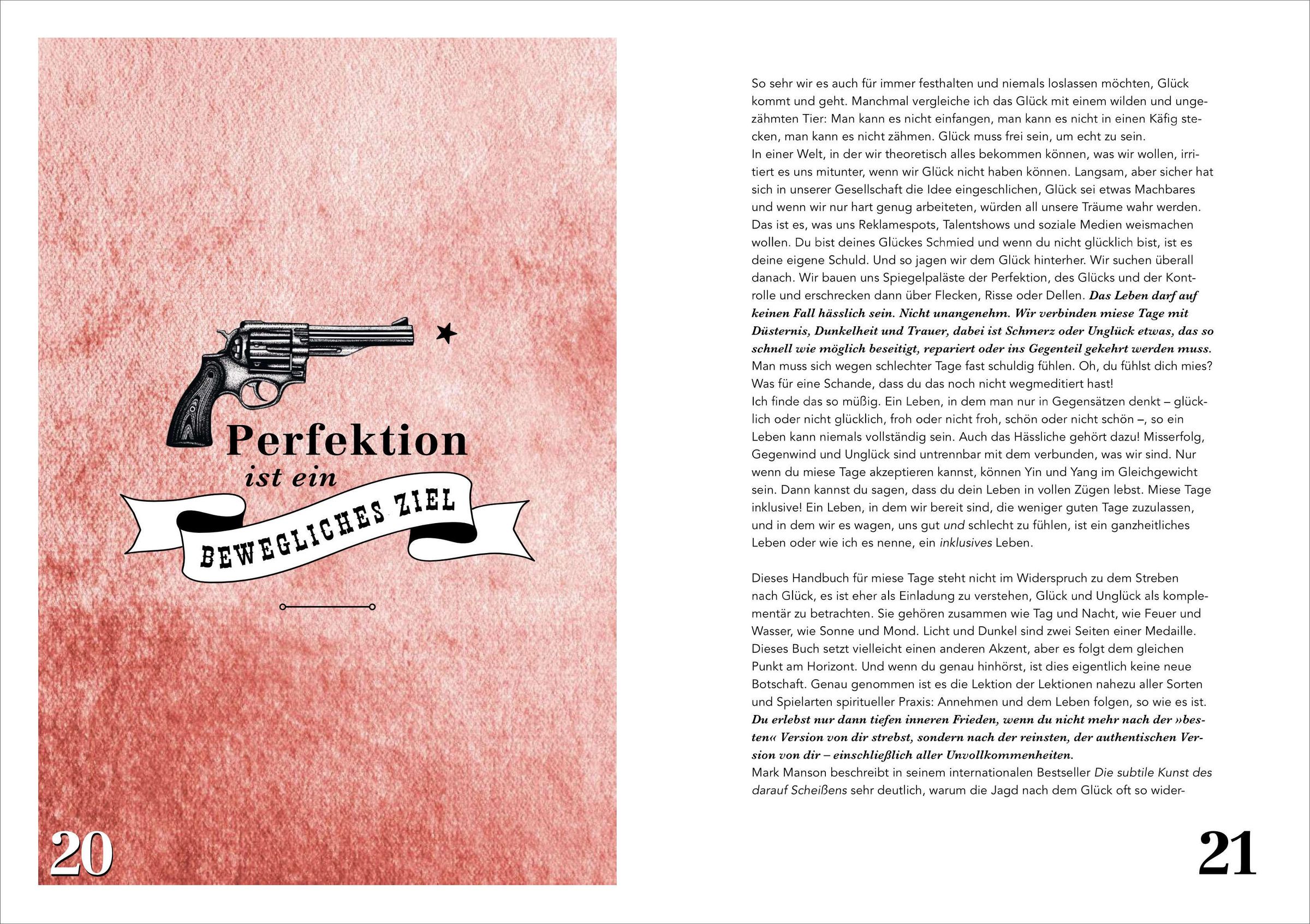 Die in ihrem Buch vorgestellten >>Shortcuts<< sollen uns dabei helfen, den ersten Schritt heraus aus dem Seelentief zu finden und den weniger guten Tagen tapfer und aufrecht entgegenzutreten. Denn auch wenn wir niemals vor miesen Tagen gefeit sein werden, ist es möglich, sie mit ein wenig Abstand zu betrachten und langfristig zu einer stärkeren, mutigeren und ausgeglicheneren Version unserer Selbst zu finden.