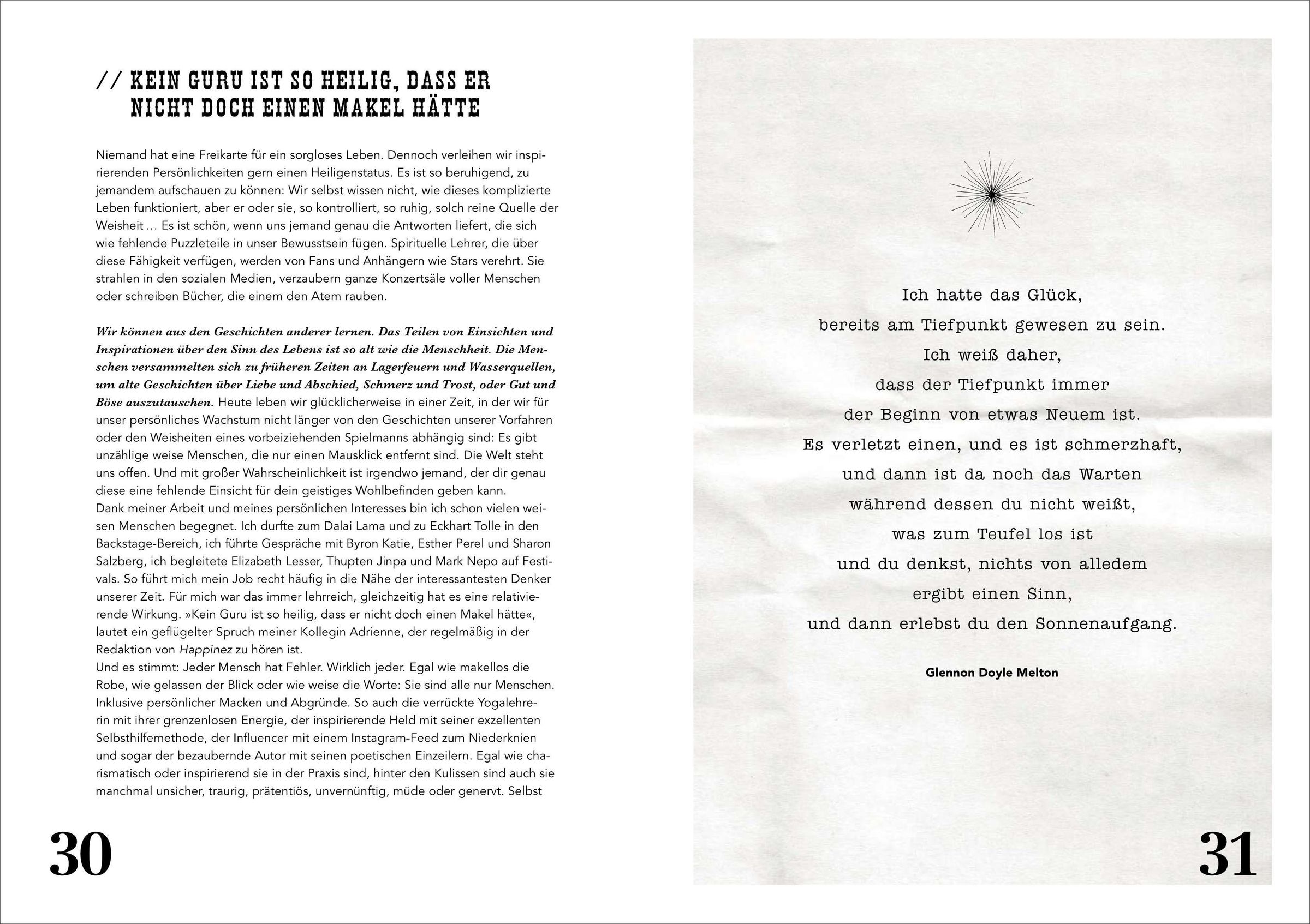 >>Wir sollten nicht die beste Version unserer selbst anstreben, sondern die authentischste<<, sagt die Chefredakteurin der niederländischen Ausgabe der Zeitschrift Happinez. Mit viel Humor übersetzt sie die oft überfrachteten Lebensglück-Konzepte in den ganz normalen Alltag. Ihre Botschaft: Die miesen Tage machen unser Leben erst interessant.
