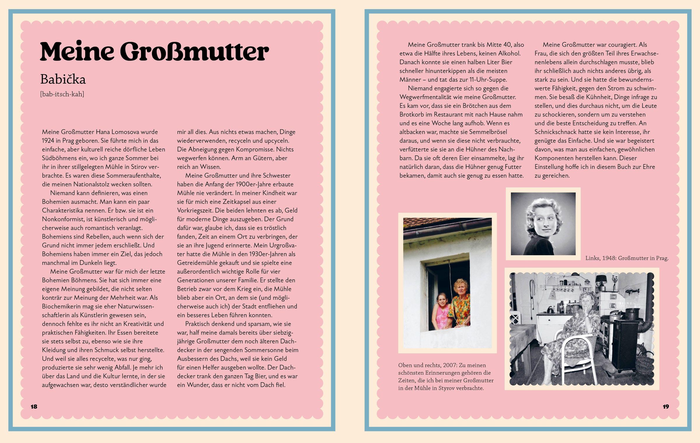 Erinnerungen aus Süd-Böhmen: Zwischen den Rezepten finden sich Geschichten über das Aufwachsen mit Babika, der Großmutter der Autorin. Sie erzählen vom Alltag im alten Mühlhaus, vom Einkochen, vom Feiern im Dorf und vom Kochen wie bei Oma.