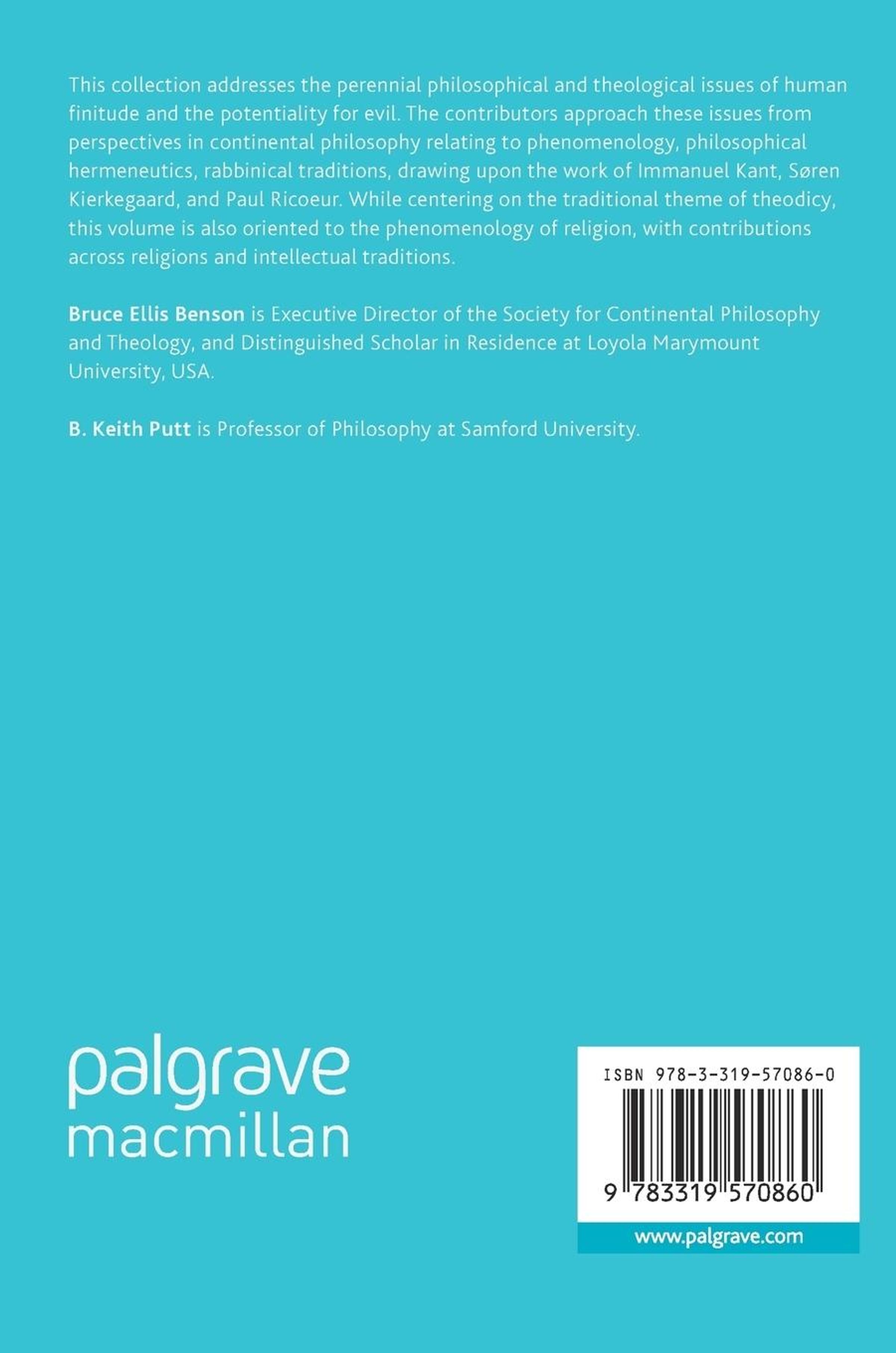 This collection addresses the perennial philosophical and theological issues of human finitude and the potentiality for evil. The contributors approach these issues from perspectives in Continental philosophy relating to phenomenology, philosophical hermeneutics, rabbinical traditions, drawing upon the work of Immanuel Kant, Søren Kierkegaard, and Paul Ricoeur. While centering on the traditional theme of theodicy, this volume is also oriented to the phenomenology of religion, with contributions across religions and intellectual traditions.