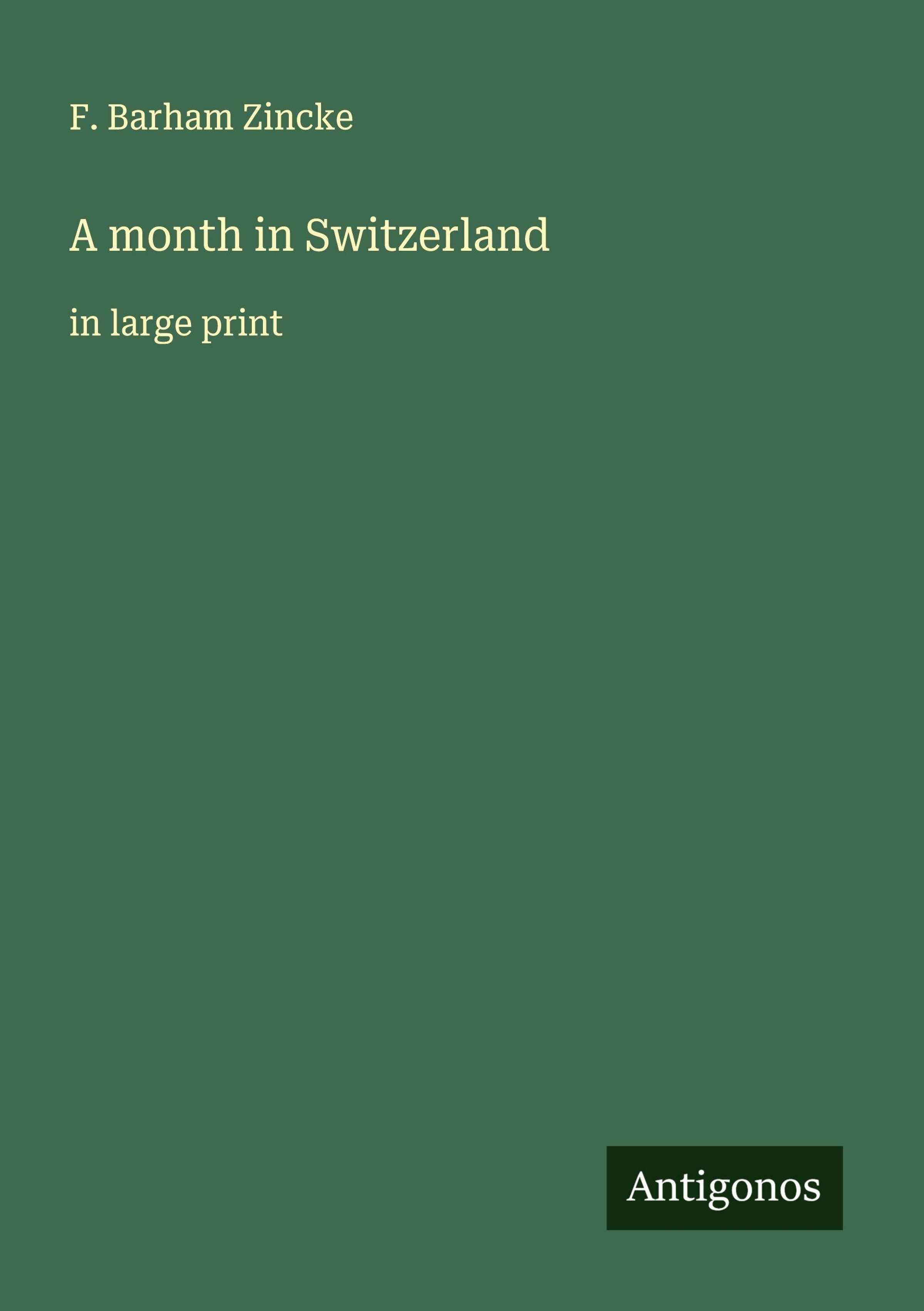 F. Barham Zincke, "A month in Switzerland in large print". Unten rechts kleines Rechteck mit "Antigonos". Grüner Hintergrund., Buch