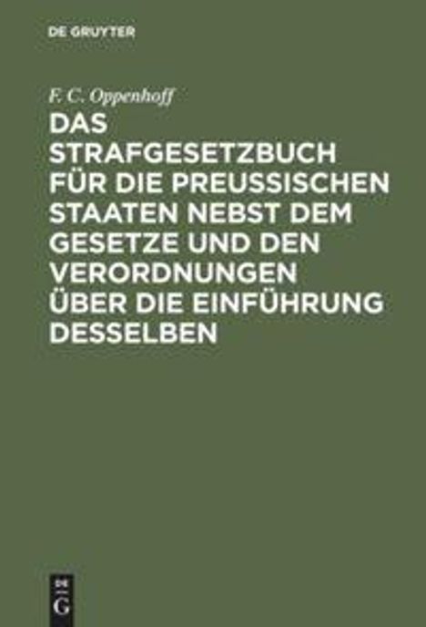 F. C. Oppenhoff: Das Strafgesetzbuch für die preußischen Staaten nebst dem Gesetze und den Verordnungen über die..., Gebunden