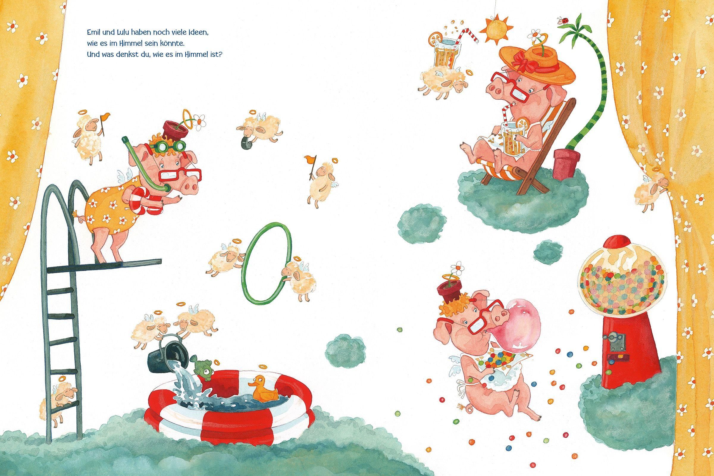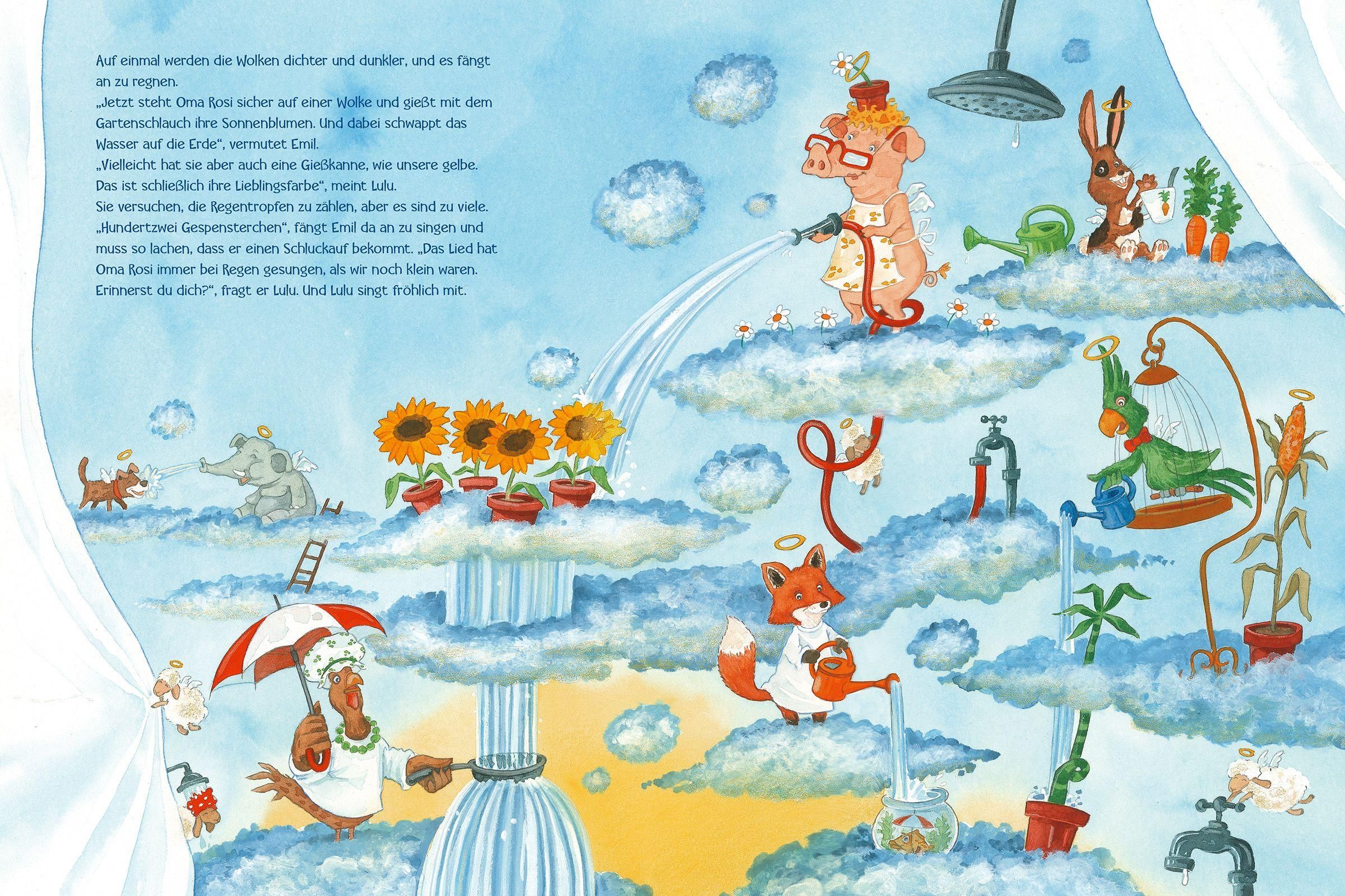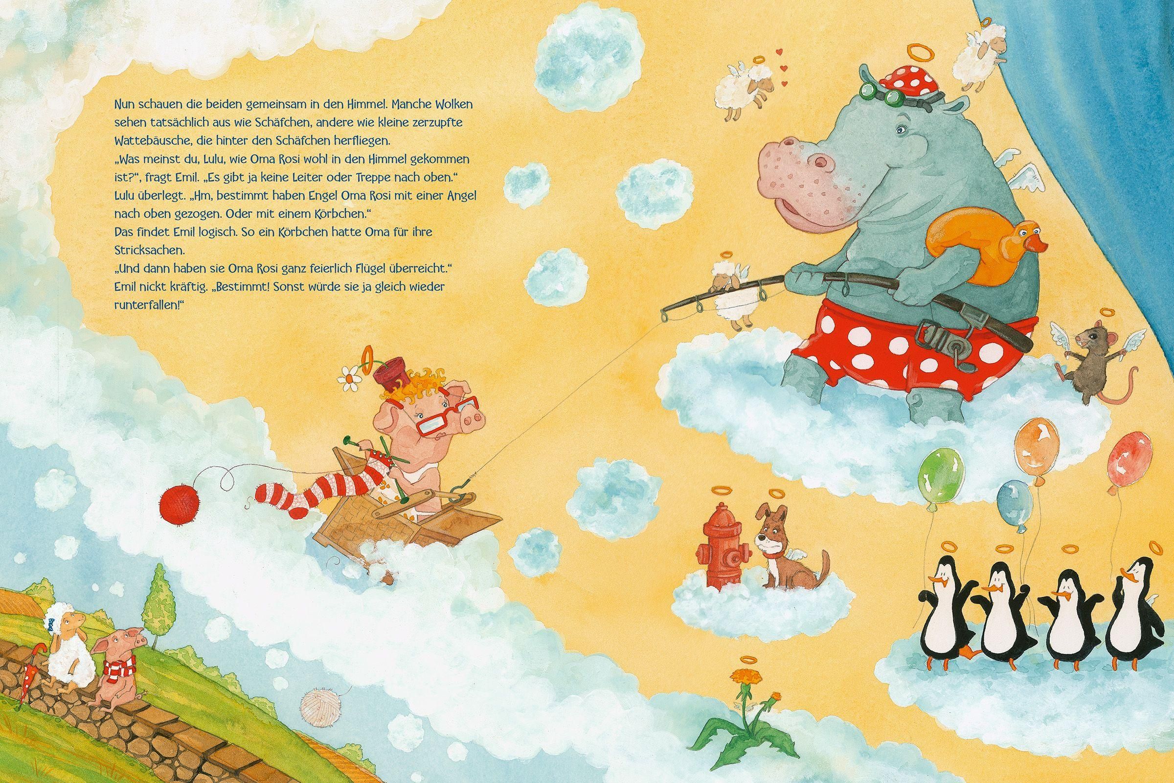 Emils Oma ist gestorben. Natürlich ist sie im Himmel, ist doch klar! Was sie dort wohl macht? Und wie es "da oben" wohl zugeht? Emil und seine Freundin Lulu werden nicht müde, immer neue Bilder vom Himmel zu entwerfen. Auch wenn sie darüber nicht immer einer Meinung sind, so sind die ganzen Erinnerungen an Oma Rosi, die ihnen dabei einfallen, doch ungemein tröstlich. Eine unbeschwerte Geschichte zum Thema Trauerbewältigung mit Illustrationen, die berühren.