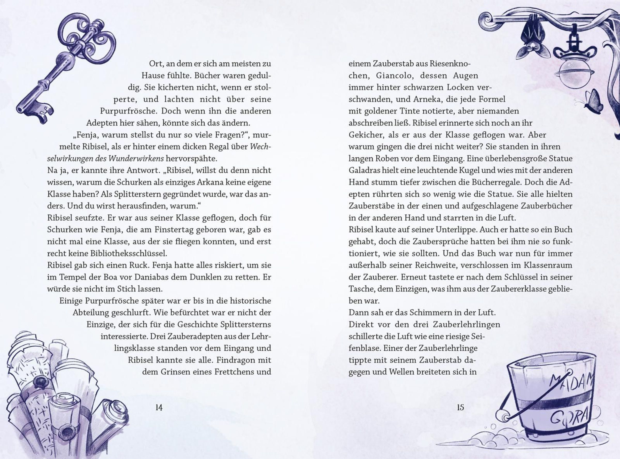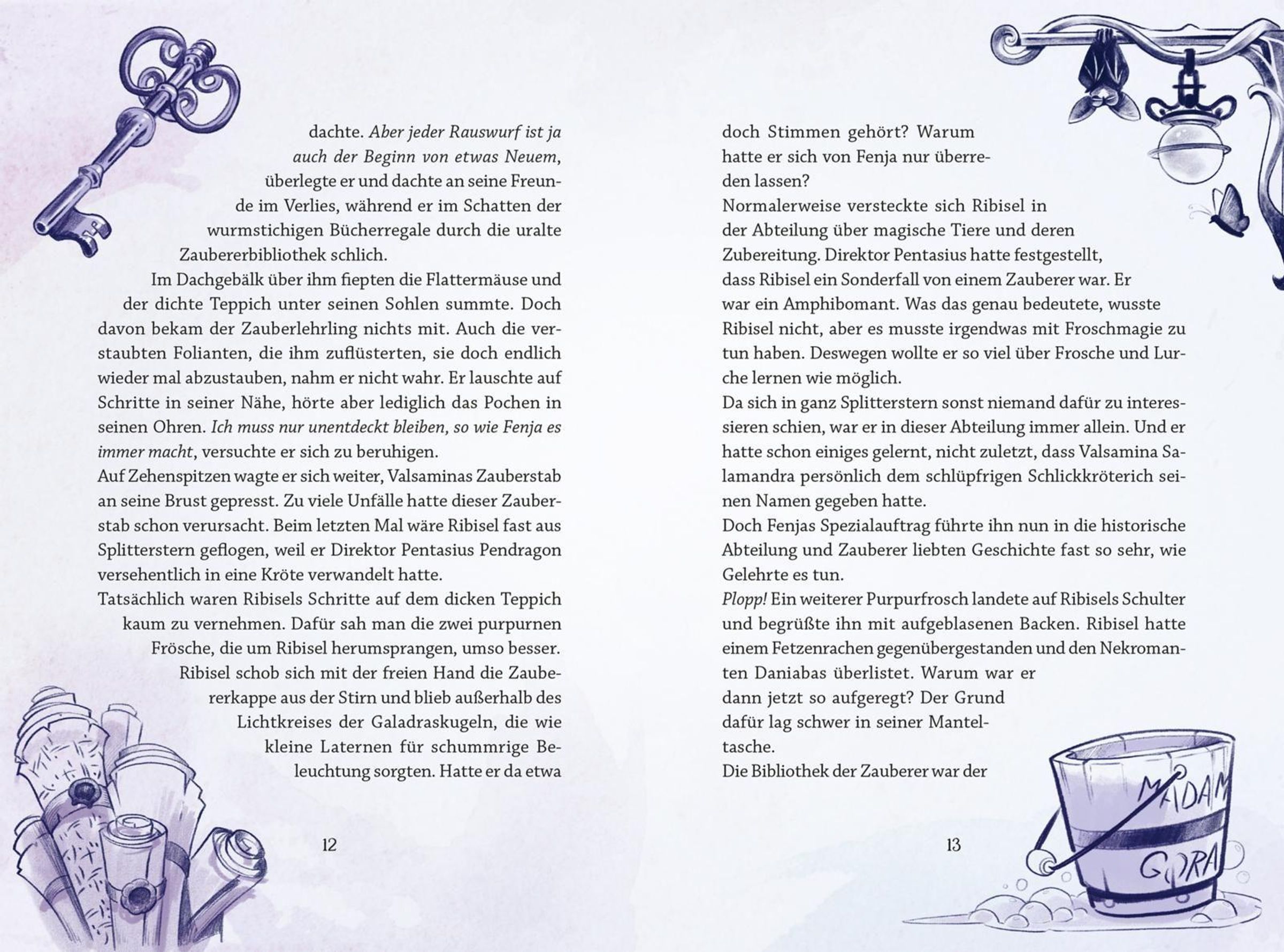 Schnarch! Die vier Lehrlinge sind wenig begeistert, als sie von der gefürchteten Madame Gora im Verlies der Akademie unterrichtet werden und dabei nur die allerödesten Putz-Zauber lernen. Erst ein rätselhafter Einbruch und das Auftauchen von Boa-Baby Muffin lassen ein neues Abenteuer erahnen. Merkwürdig, dass Madame Gora in einer fremden Sprache mit dem Reptil zu sprechen scheint. Ist die Zauberin wirklich die, die sie vorgibt zu sein? Und was hat Fenjas neue Freundin Mera Mandelkern mit alldem zu tun?