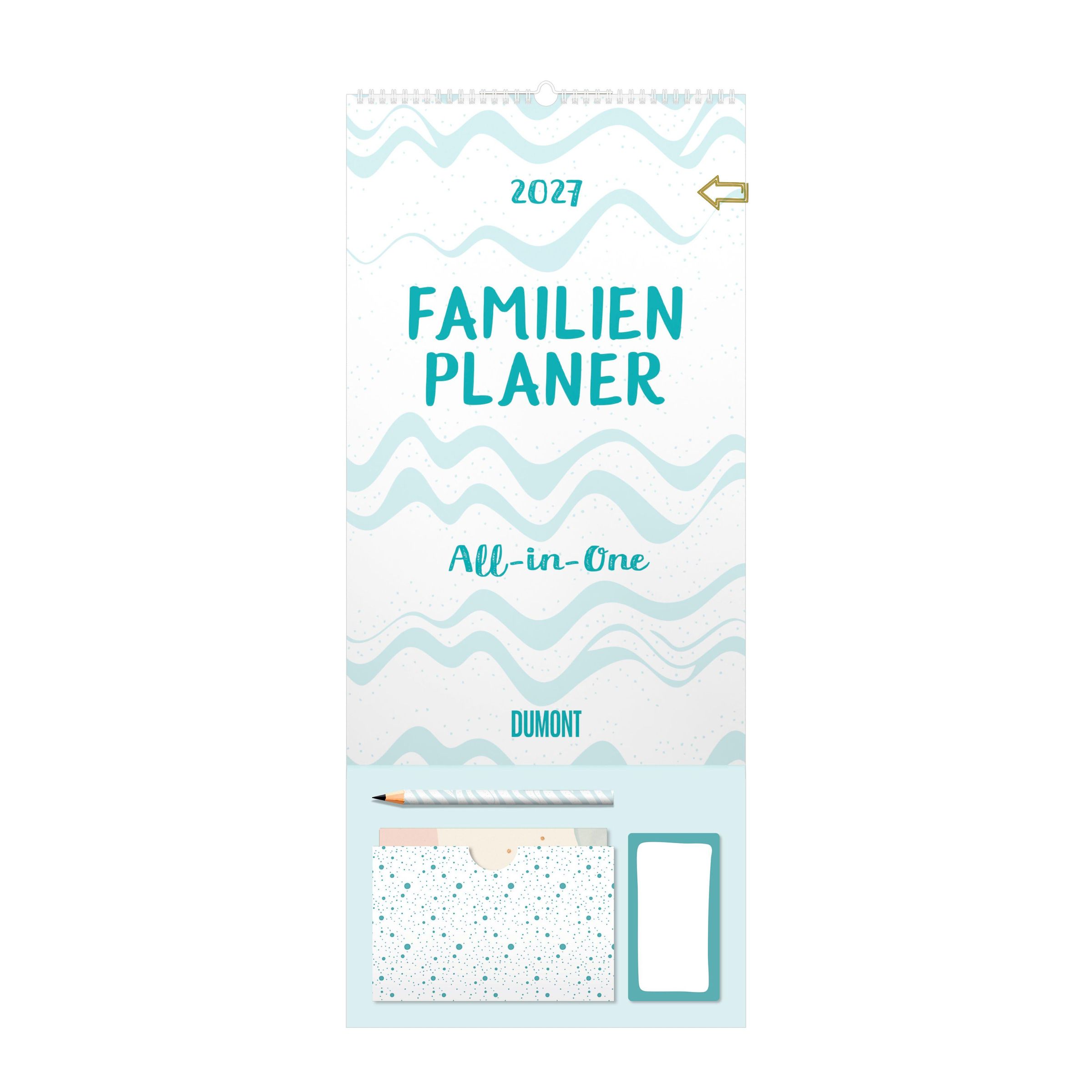 Der Familienplaner All-in-One 2027 von DUMONT ist die praktische Komplettlösung für den Familienalltag: viel Platz zum Eintragen, klare Struktur und cleveres Zubehör direkt am Kalender. Im freundlichen Aquarell-Design behältst du Termine, Schul- und Freizeitplanung übersichtlich im Blick -- und dank Tasche, Notizzetteln und Stift ist alles griffbereit an einem Ort.