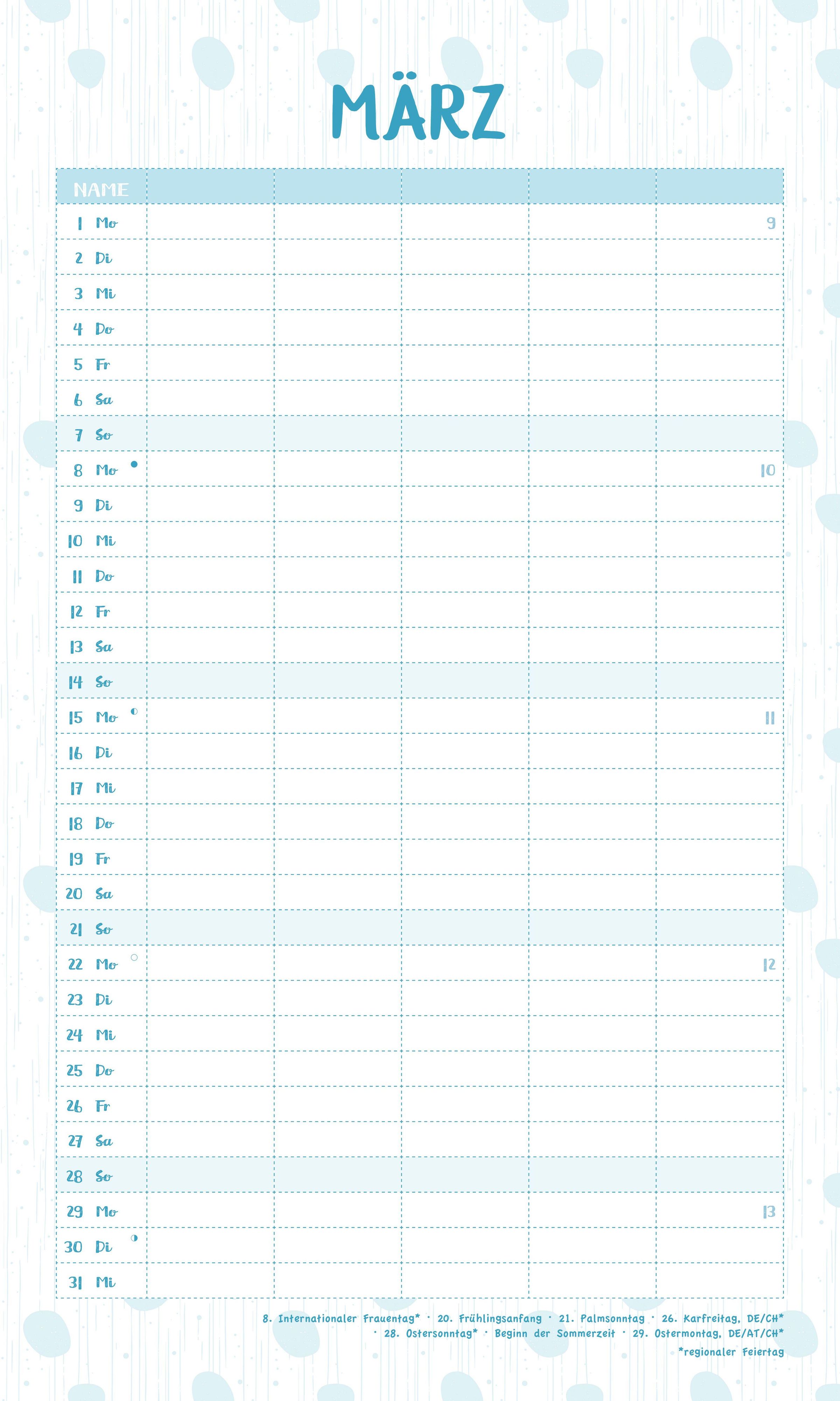 Extra großes Format: 30 x 70 cm -- viel Raum für Termine, Notizen und den Gesamtüberblick.
