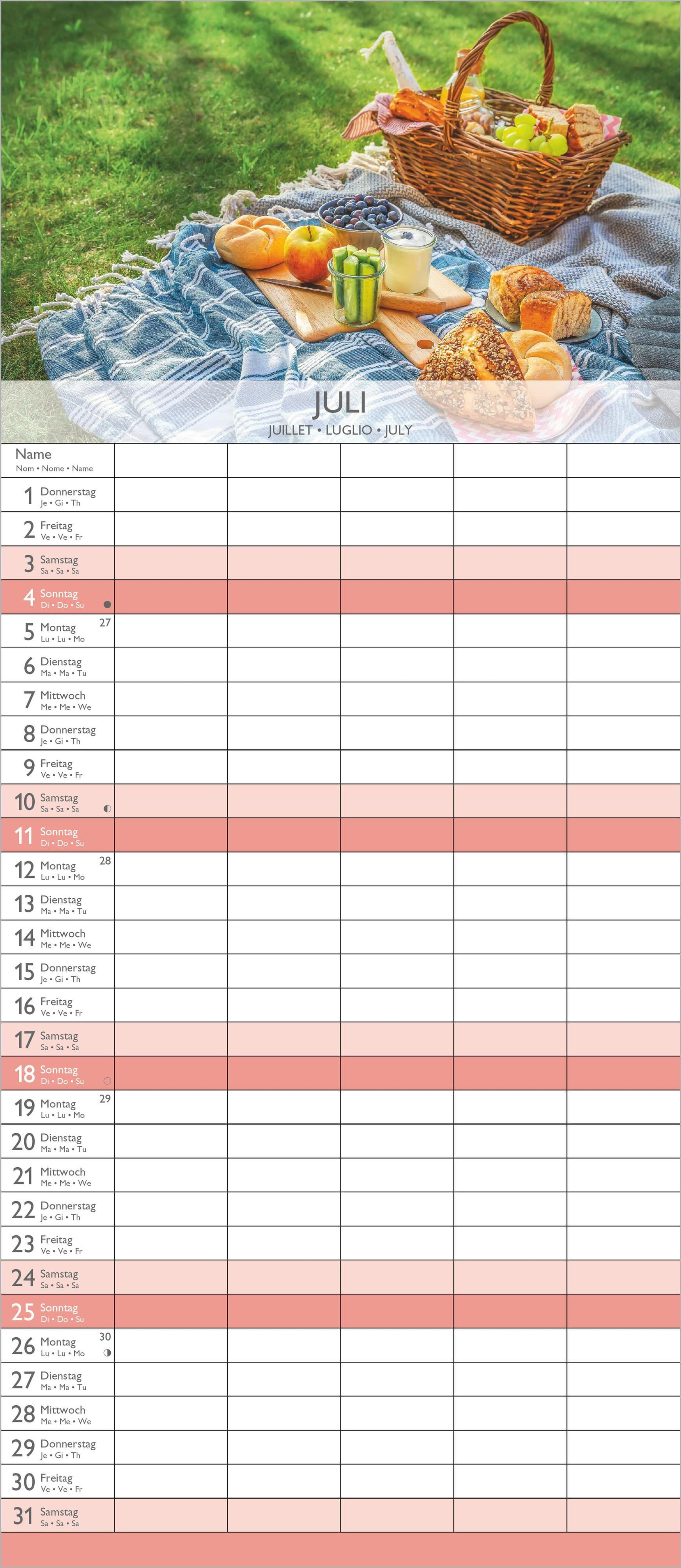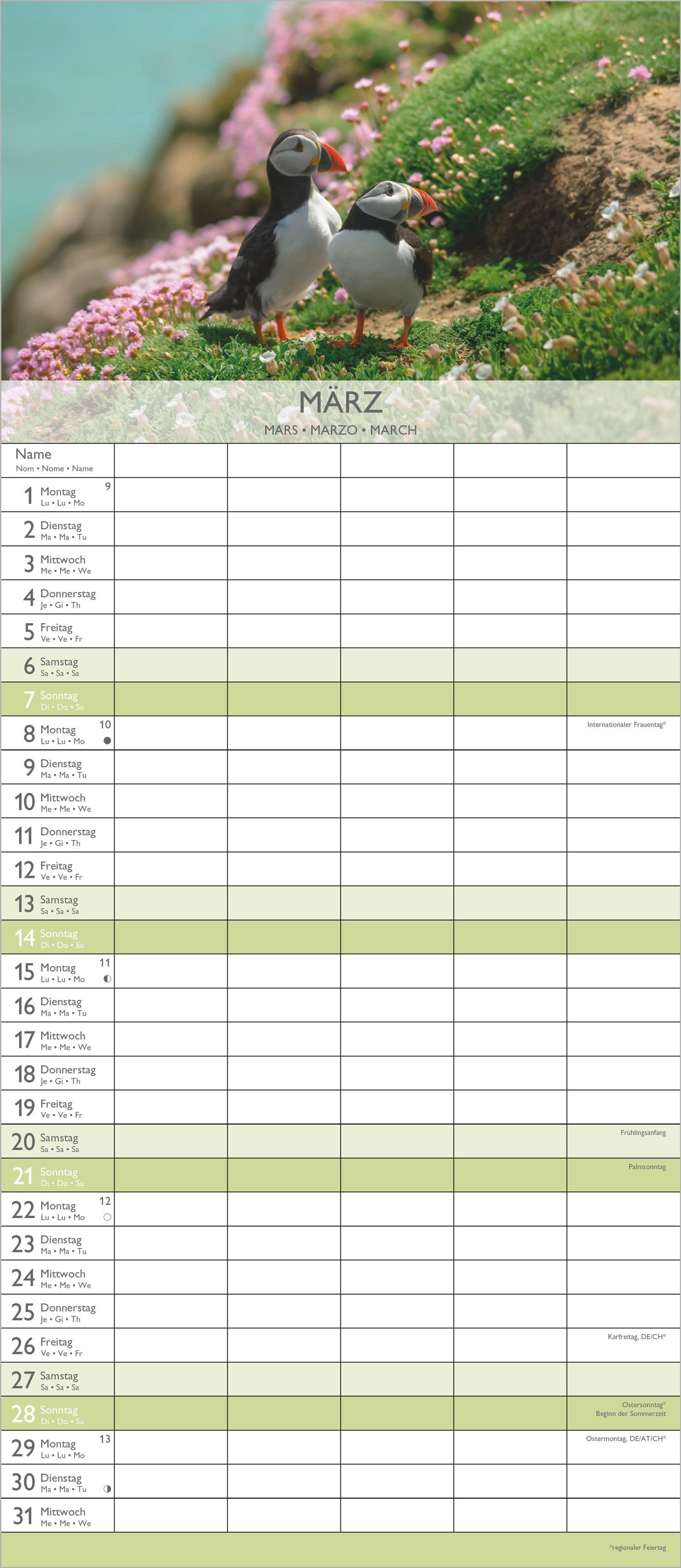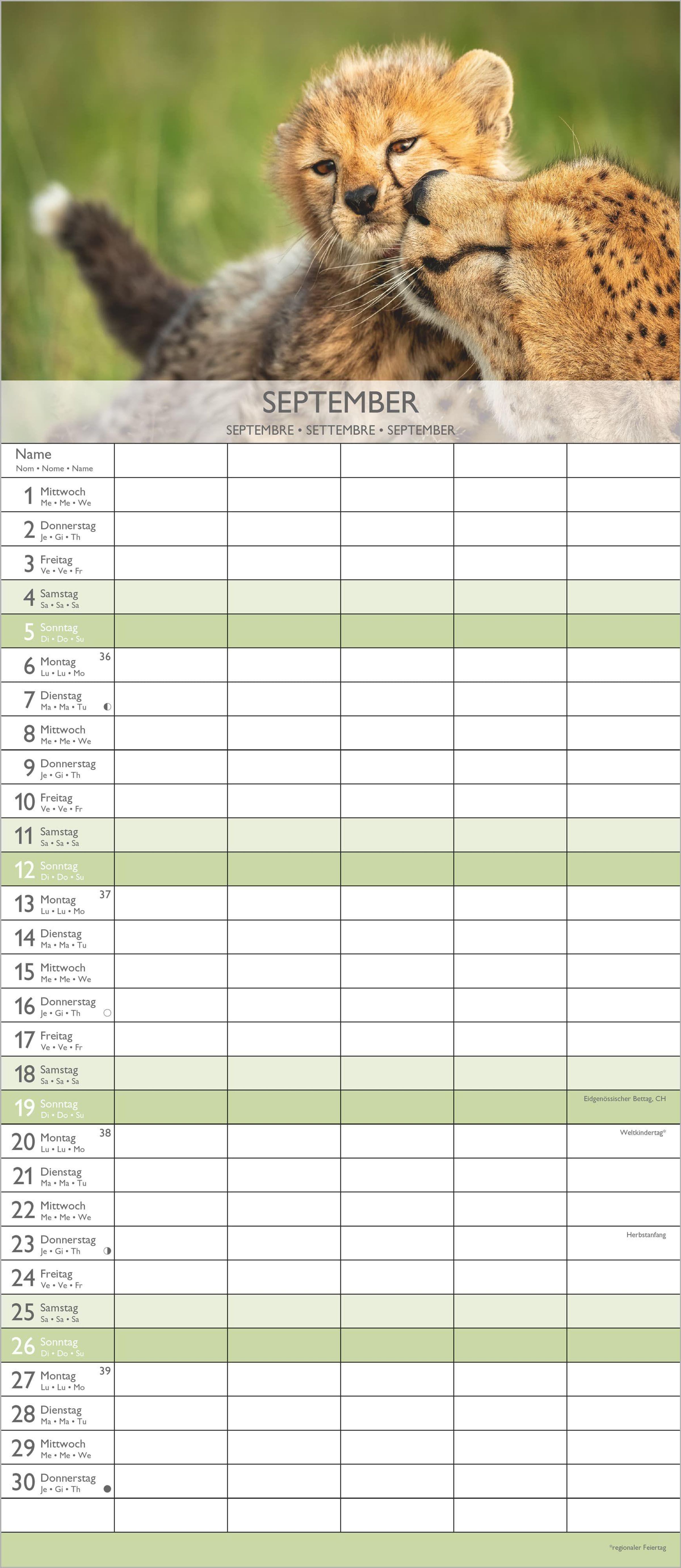 4-sprachiges Kalendarium: DE/FR/IT/GB -- ideal auch für mehrsprachige Haushalte