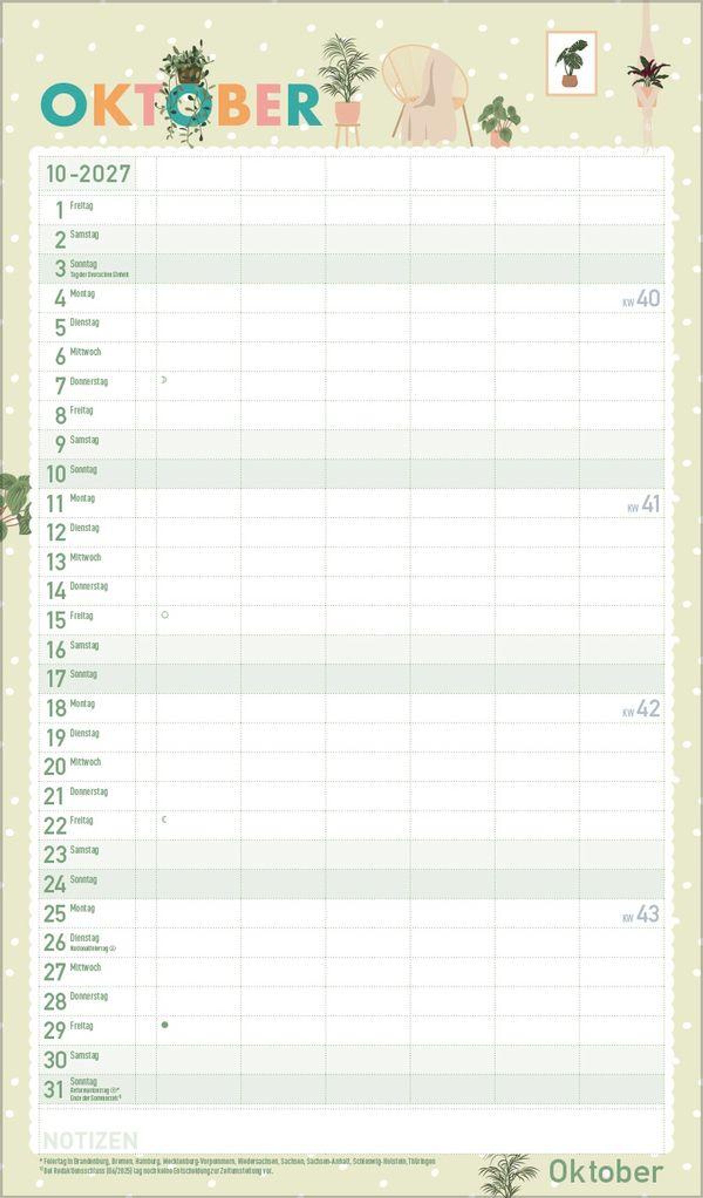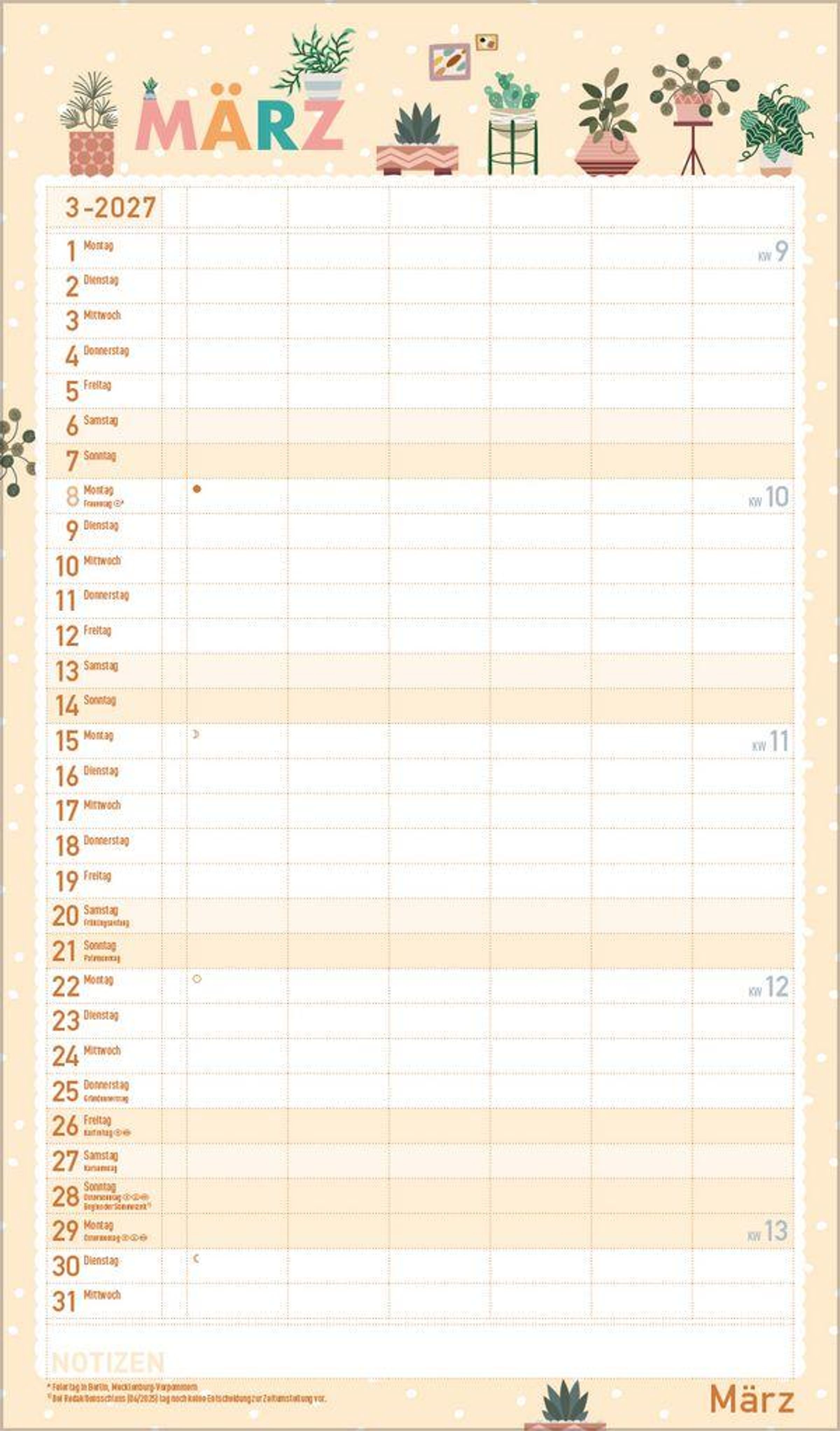 - Familientimer, 6 große Spalten. Mit Ferienterminen, extra Spalte und Vorschau bis März 2027 und vielem mehr. Format: 27 x 46 cm