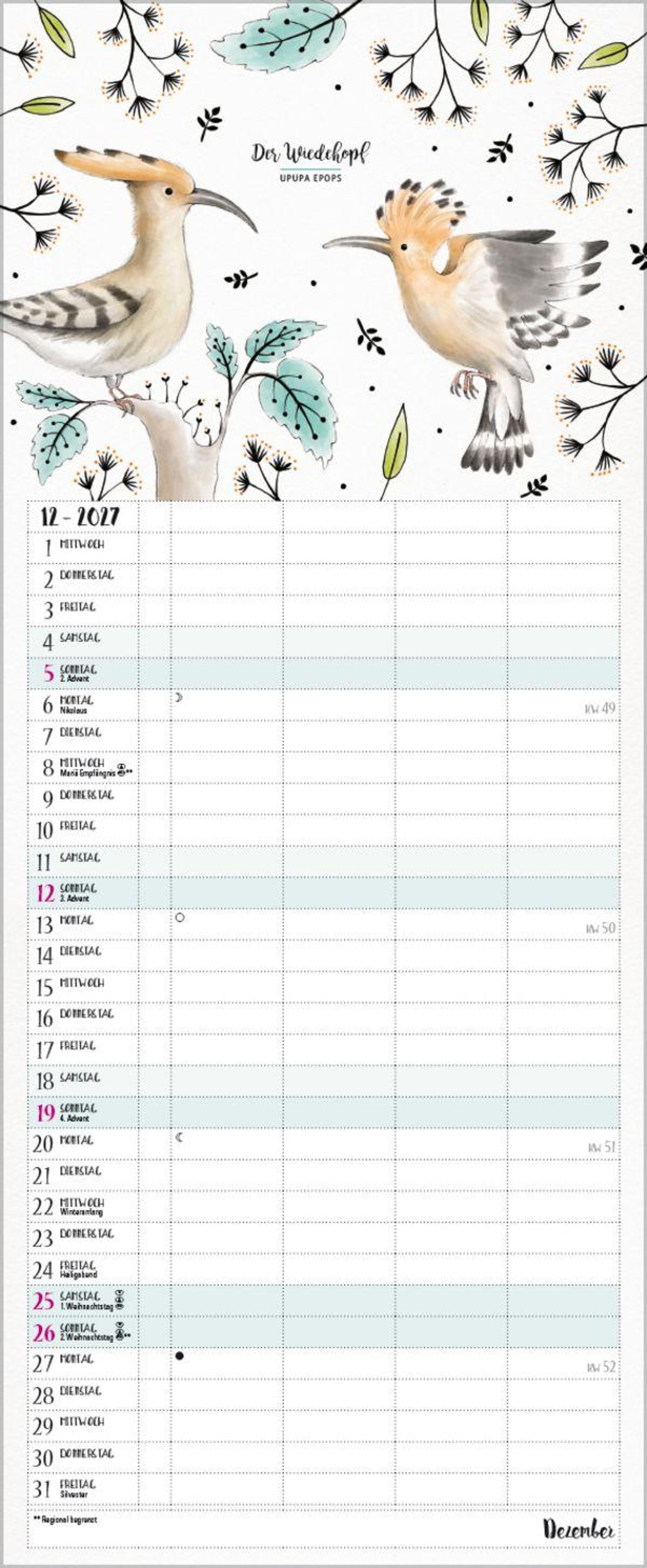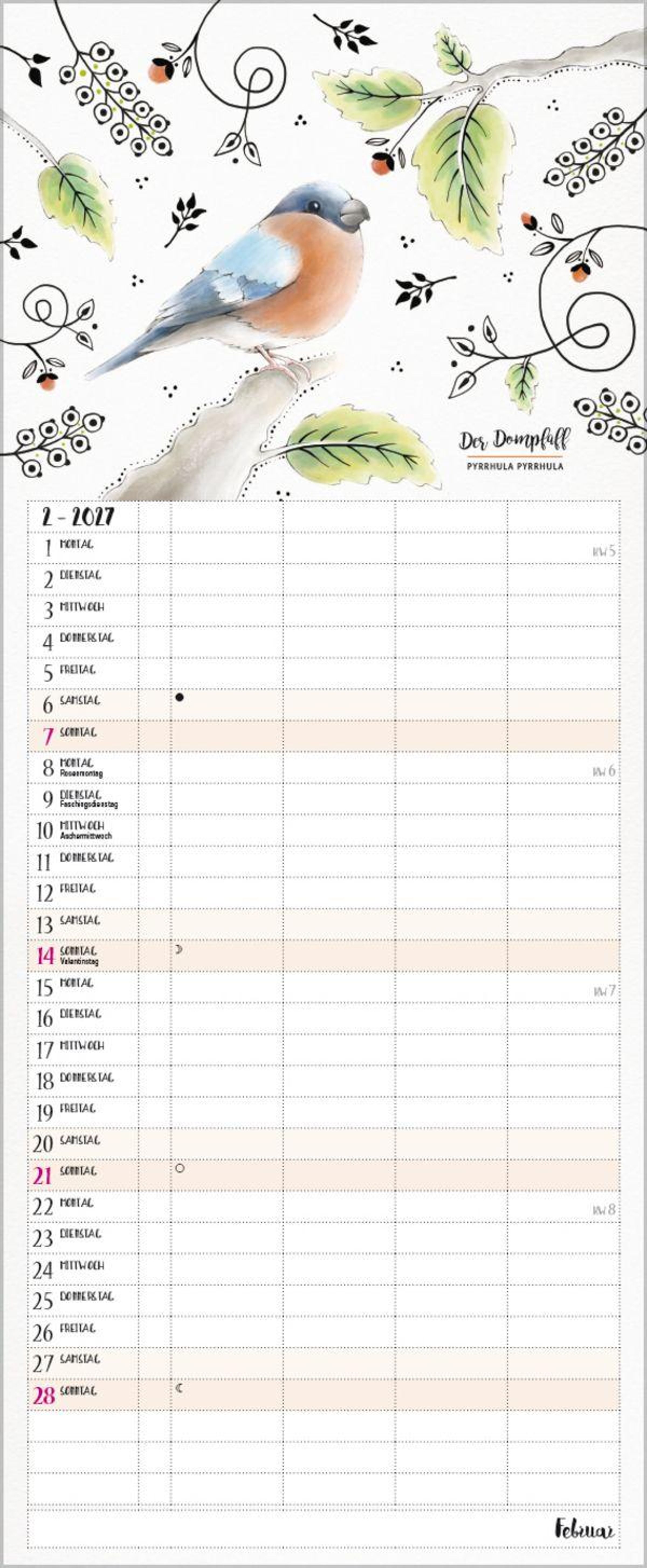 - Familientimer - 4 große Spalten mit viel Platz. Hochwertiger Familienkalender für Vogelliebhaber und Vorschau bis März 2027. 19 x 46 cm.