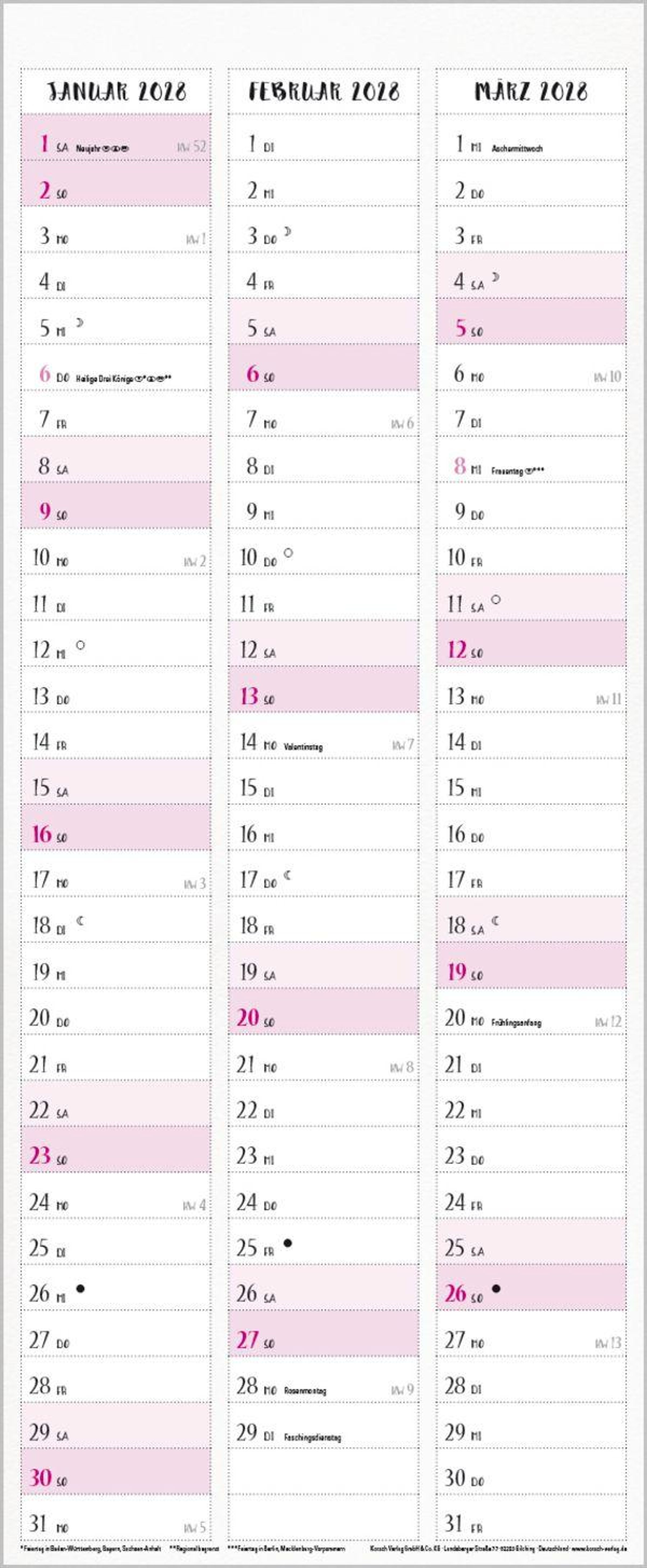 Korsch Familienkalender - Produktmerkmale
