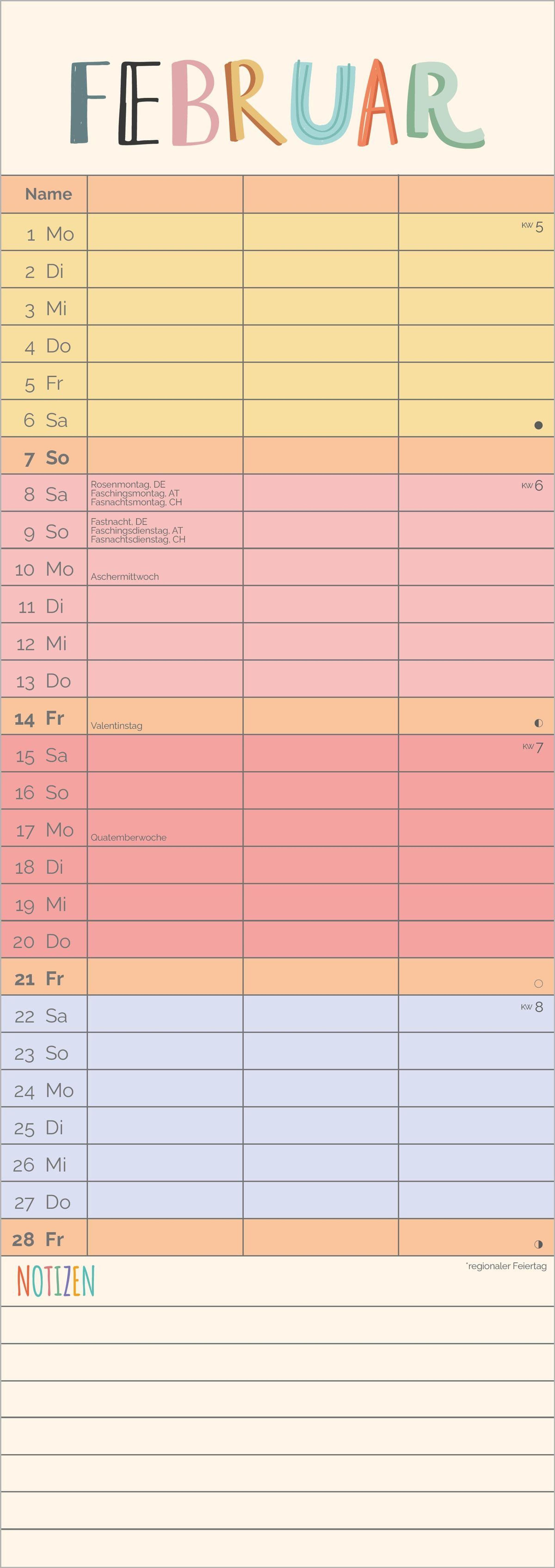 Mit Ferienterminen: Perfekt für Schul- und Urlaubsplanung