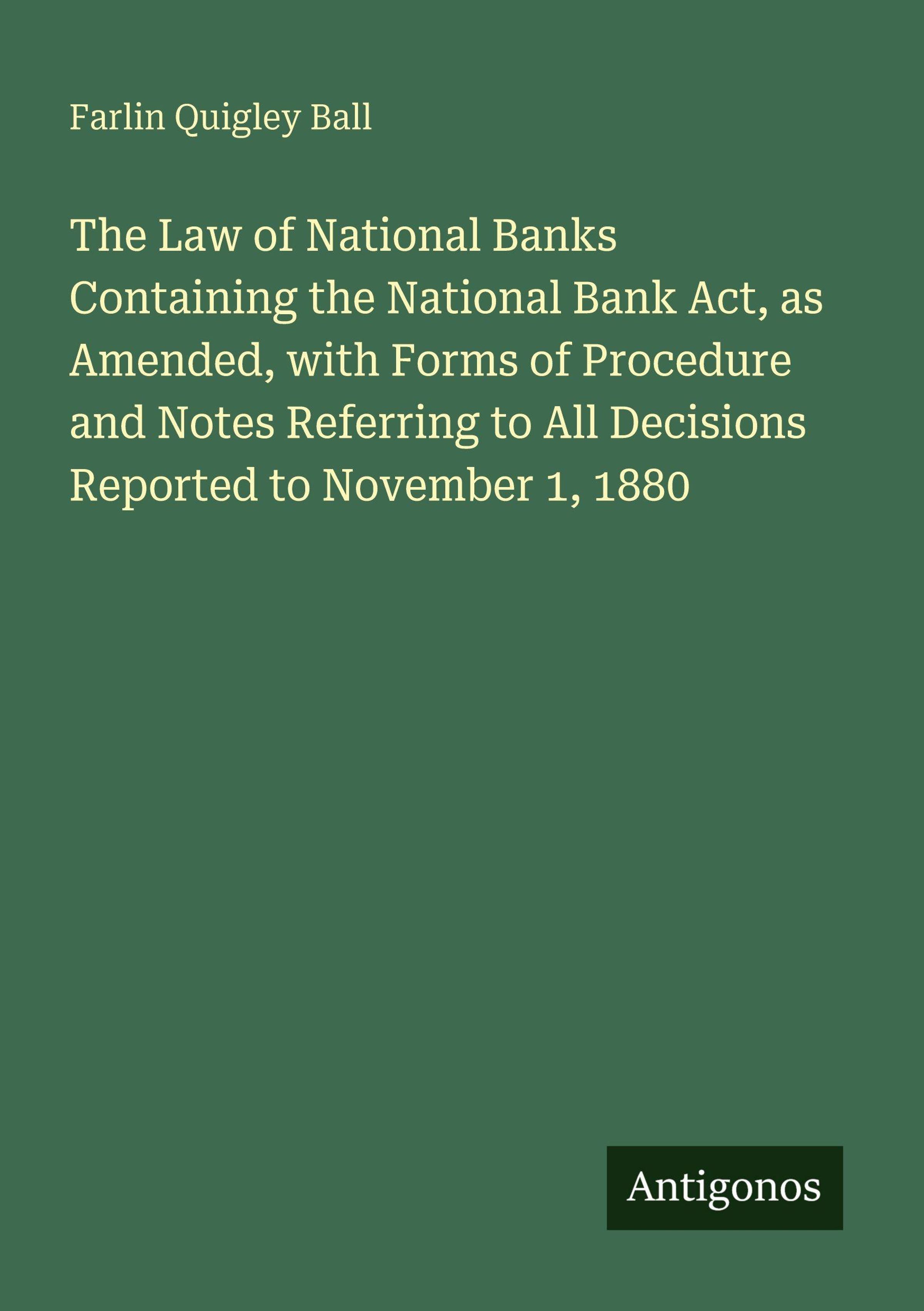 The Law of National Banks Containing the National Bank Act, as Amended, with Forms of Procedure and Notes Referring to All Decisions Reported to November 1, 1880