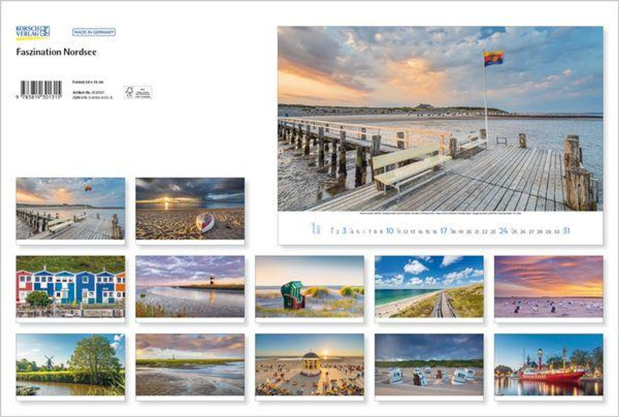 - Großer Foto-Wandkalender von der Küste und der Nordsee in Deutschland. PhotoArt Panorama Querformat: 58x39 cm.