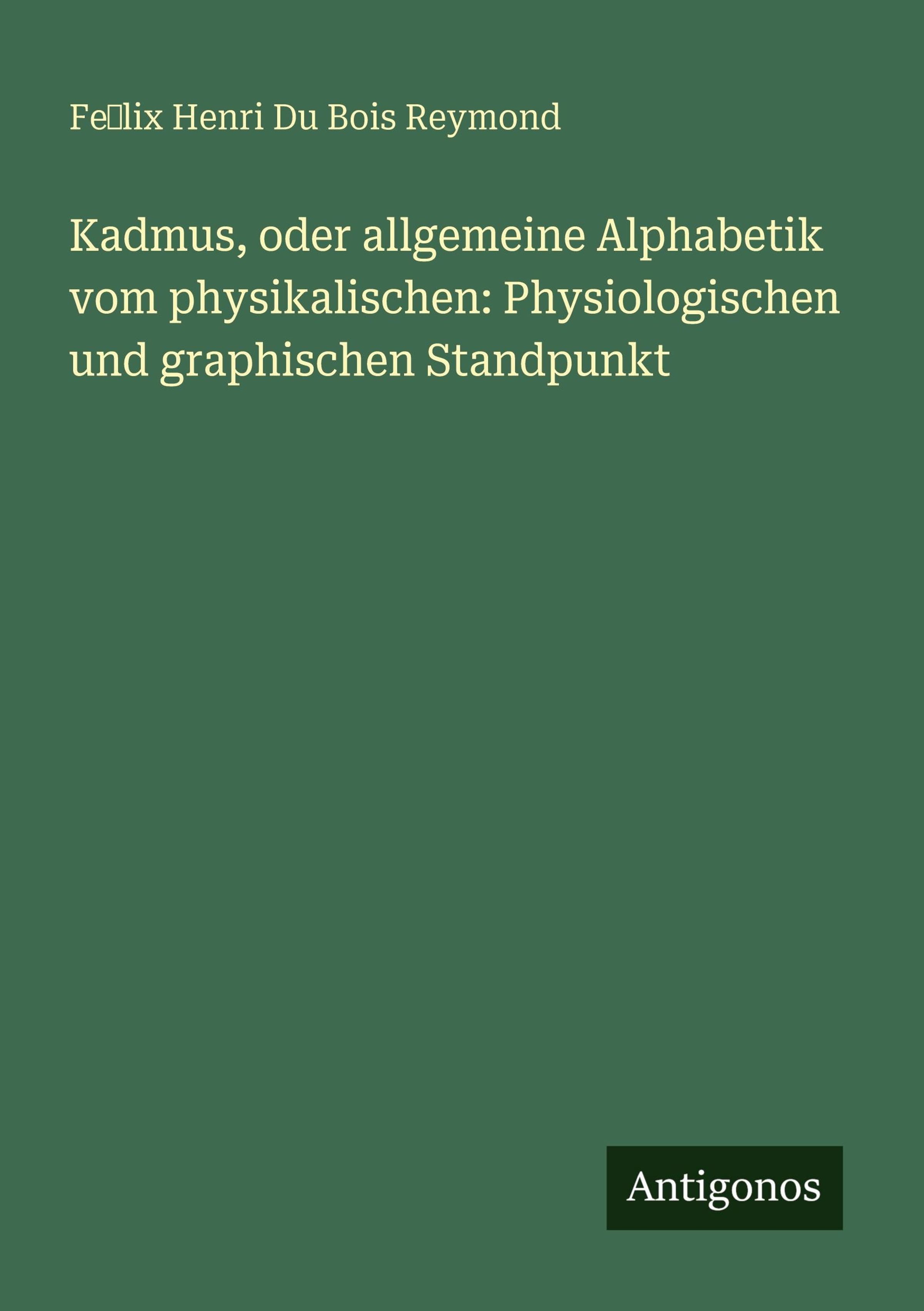Fe¿lix Henri Du Bois Reymond: Kadmus, oder allgemeine Alphabetik vom physikalischen: Physiologischen und..., Kartoniert / Broschiert