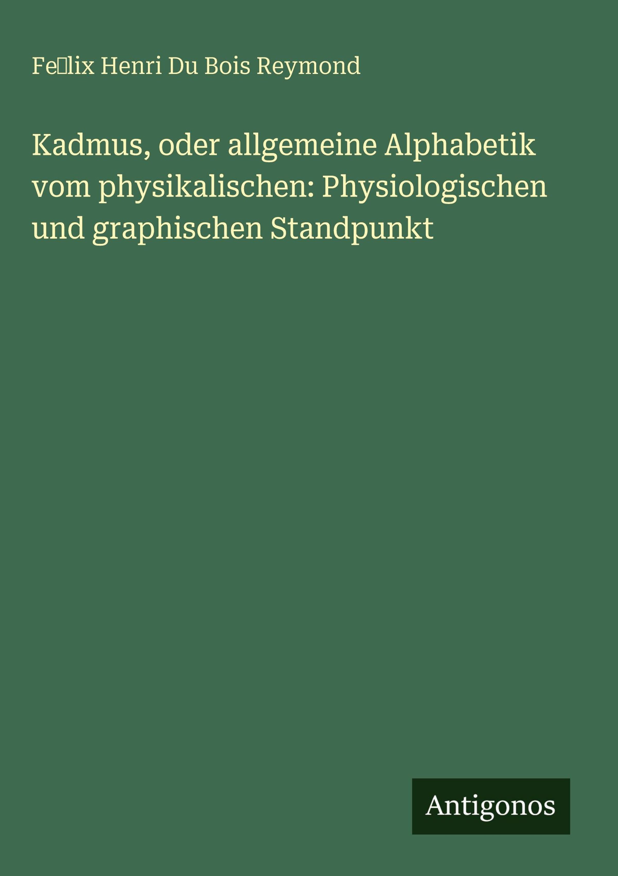 Fe¿lix Henri Du Bois Reymond: Kadmus, oder allgemeine Alphabetik vom physikalischen: Physiologischen und..., Gebunden