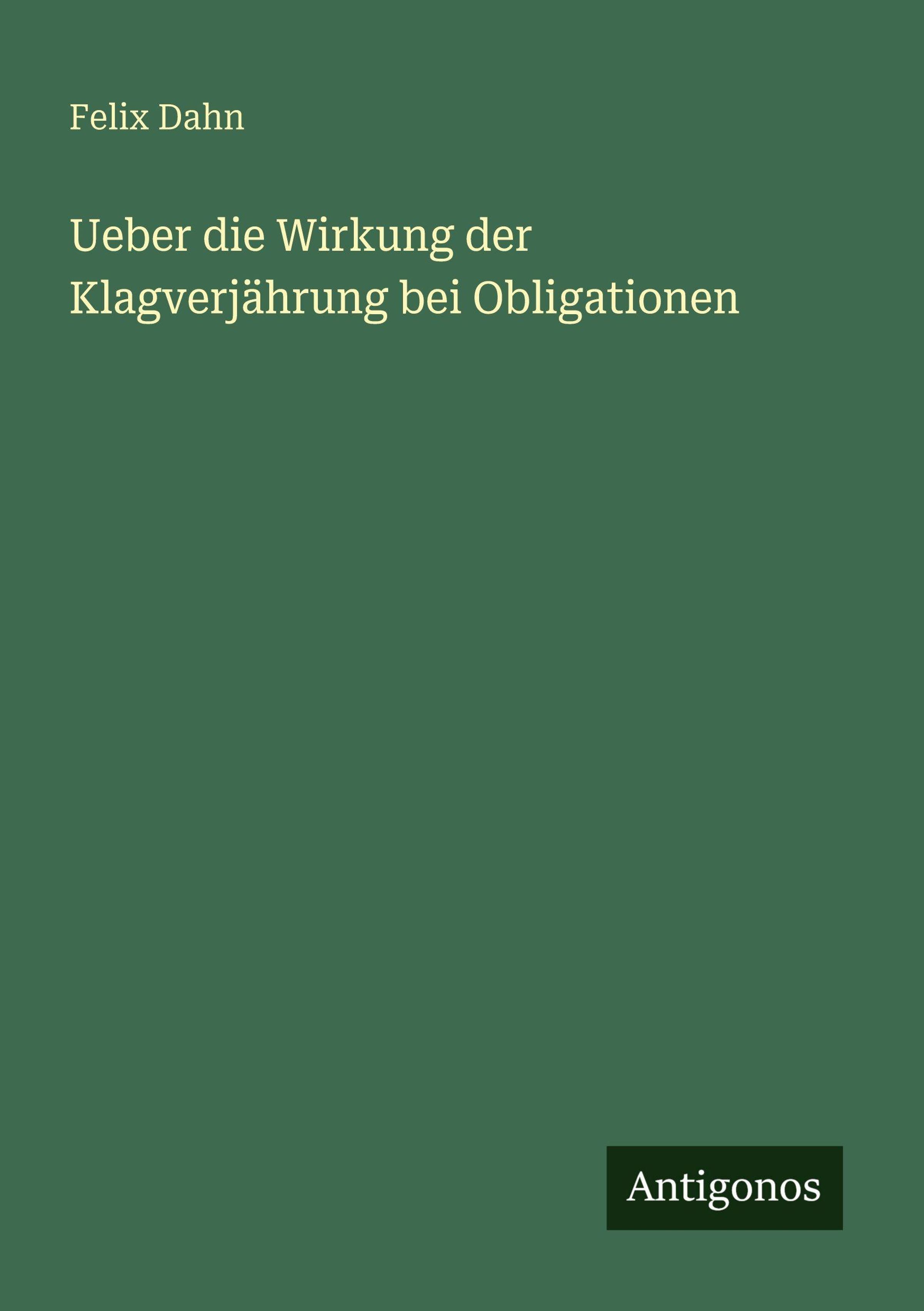 Felix Dahn: Ueber die Wirkung der Klagverjährung bei Obligationen, Kartoniert / Broschiert