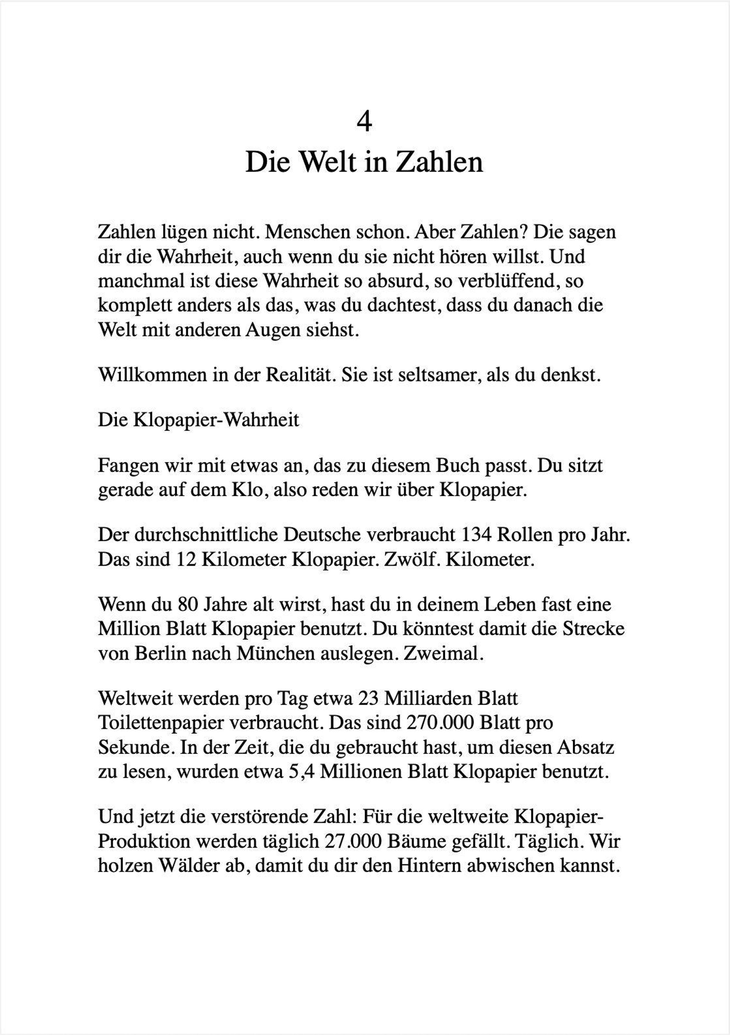 Jedes Kapitel passt perfekt in einen durchschnittlichen Toilettengang. Wirklich. Wir haben das nicht gemessen. (Doch. Haben wir.)