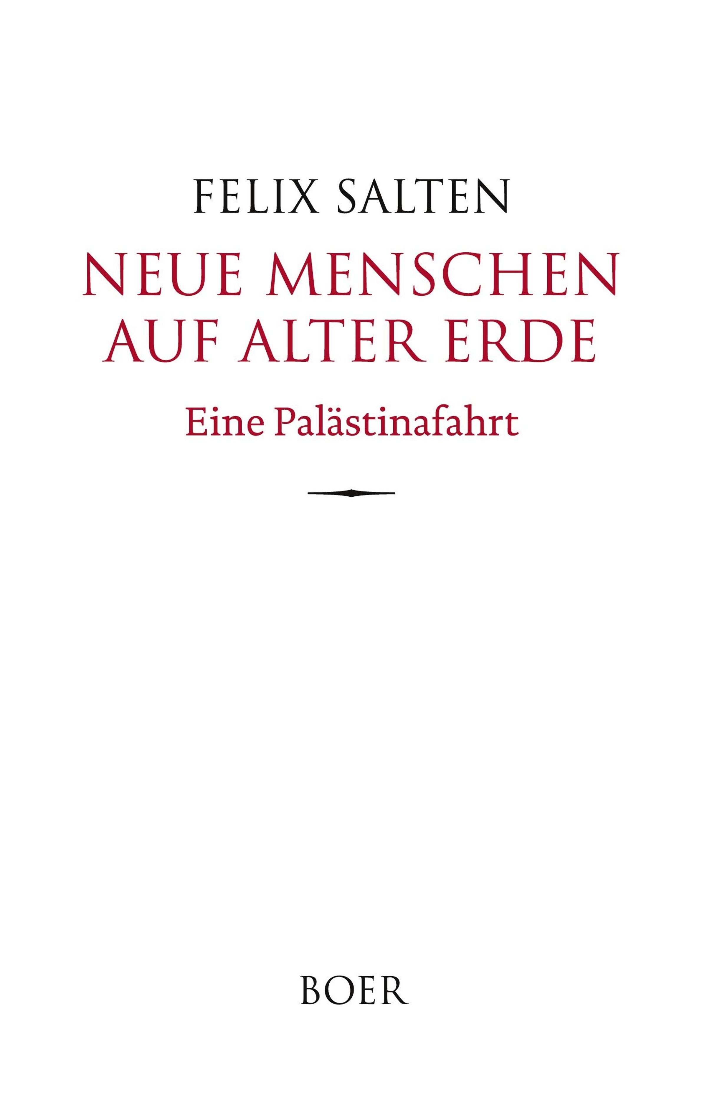 Ein frühes Dokument zur Lage in Palästina während der jüdischen Besiedlung Felix Salten schildert in seinem neusten Werk Palästina, das ihm zum Erlebnis wurde. Mit hinreißender Einprägsamkeit werden die historischen Voraussetzungen bildhaft entwickelt. Dies Buch steht über jeder Partei, Konfession und Nation als ein rein menschliches Dokument. [Aus der Ankündigung des Zsolnay Verlags]