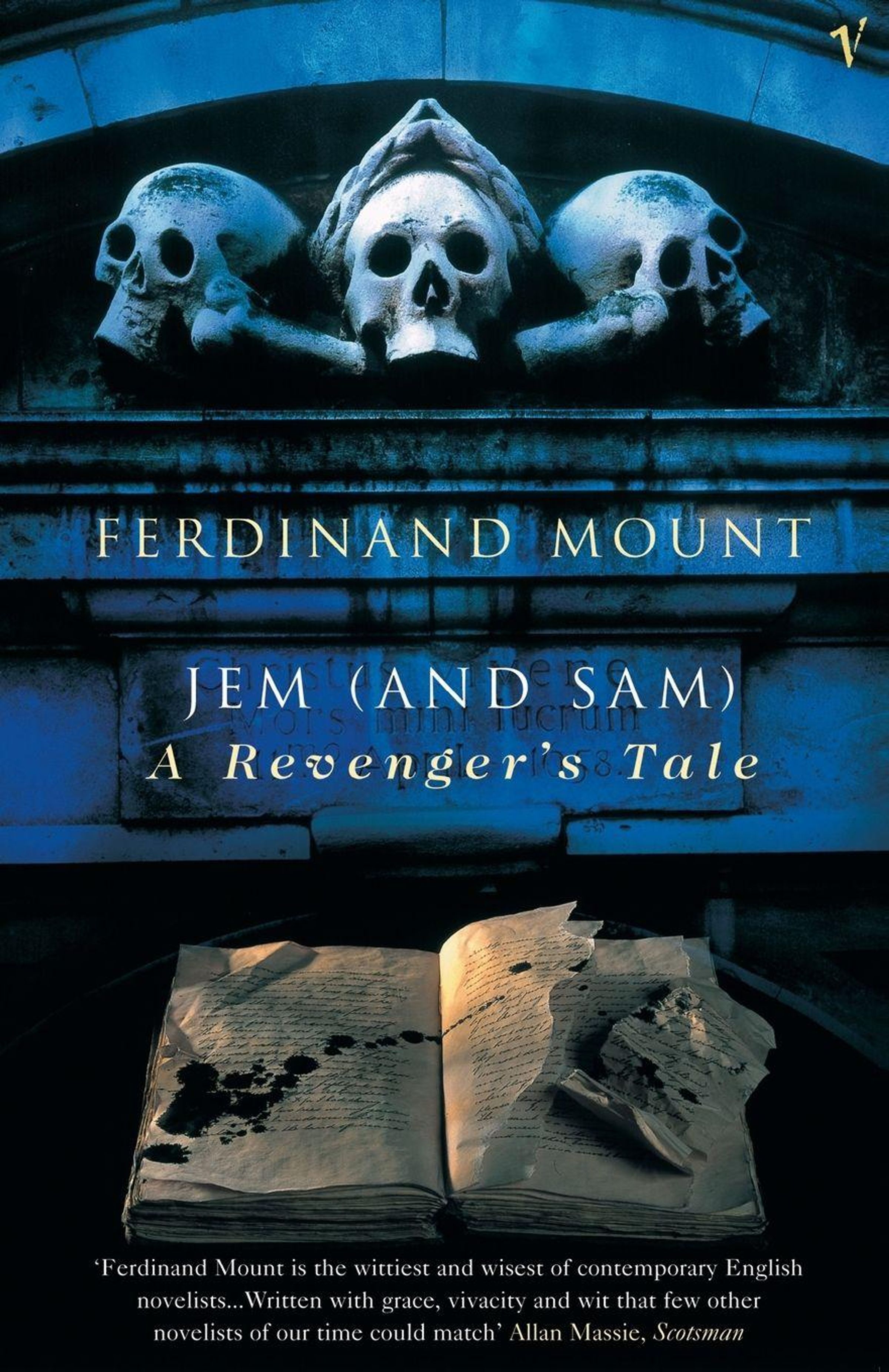 "Ferdinand Mount: Jem (and Sam) A Revenger's Tale." Oberhalb sind drei Totenschädel zu sehen, darunter ein altes Buch., Buch