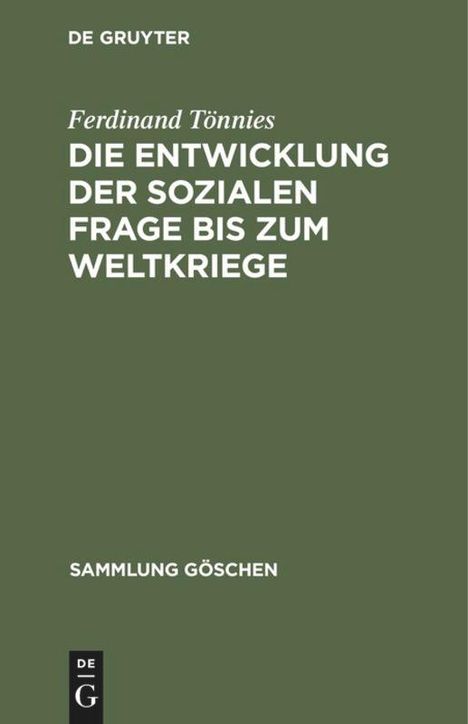 Ferdinand Tönnies: Die Entwicklung der sozialen Frage bis zum Weltkriege, Gebunden