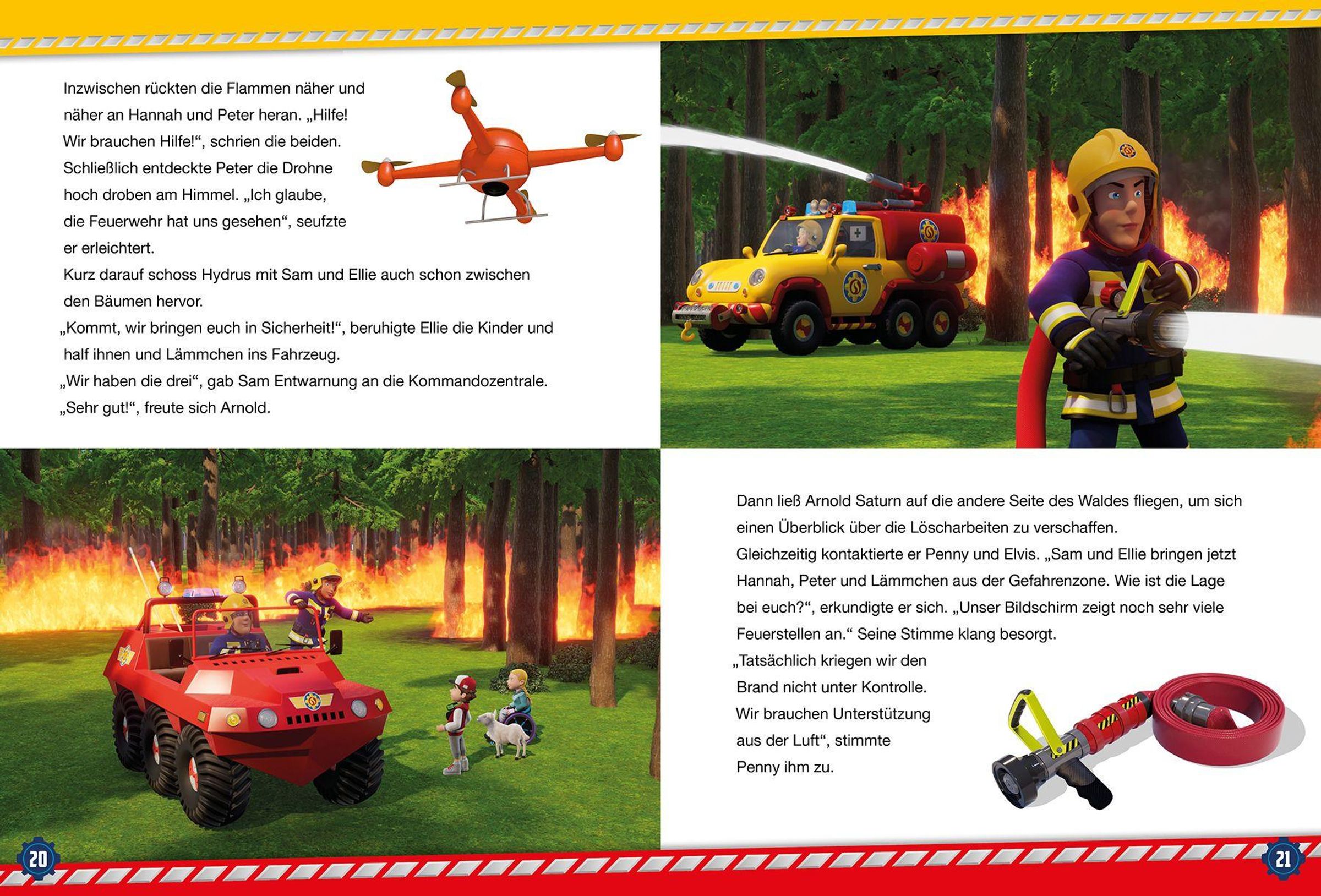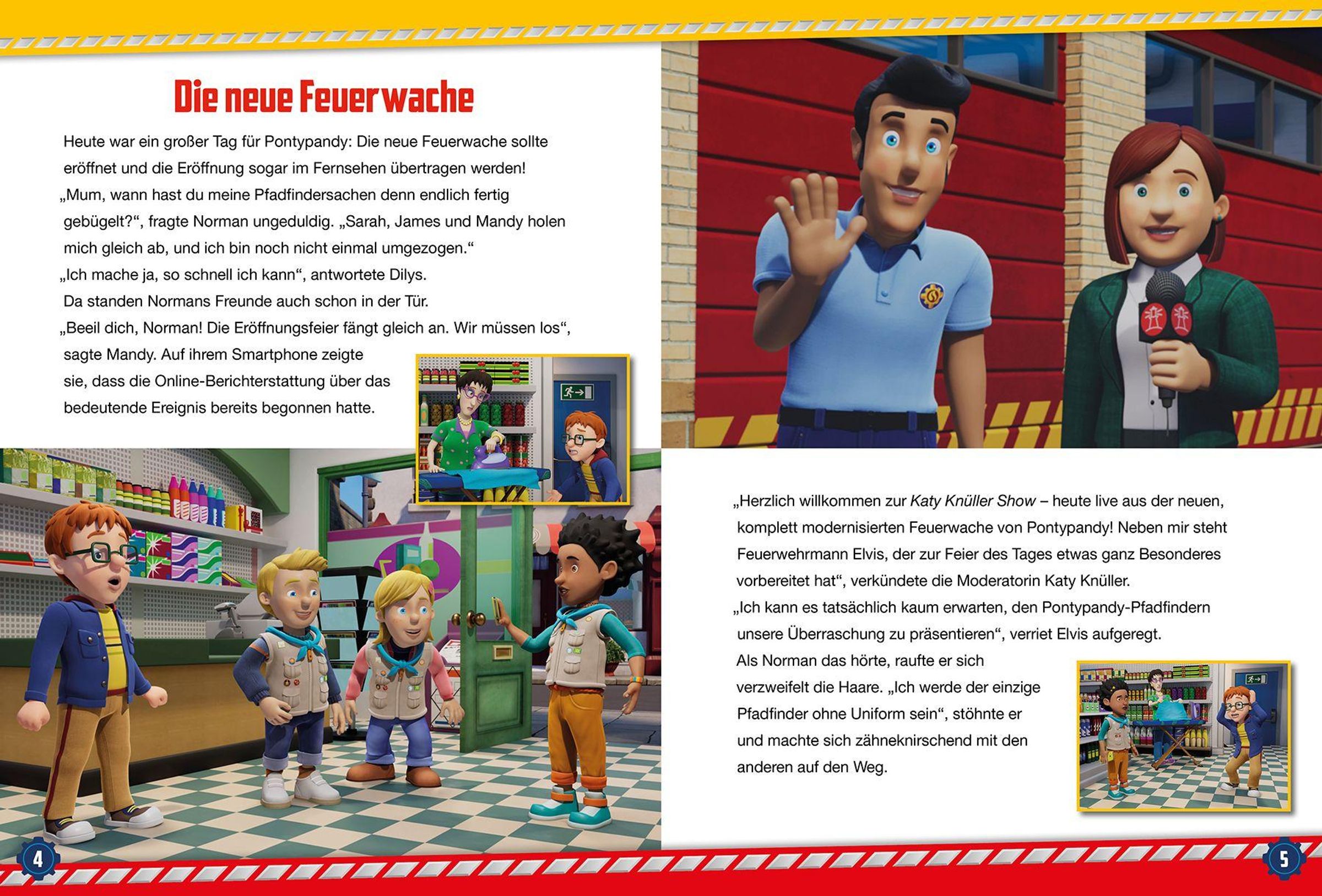 Mit Feuerwehrmann Sam ist Vorlesespaß garantiert! In Pontypandy herrscht große Aufregung, denn die brandneue Feuerwache wurde gerade erst eröffnet - und schon bricht in Dilys' Supermarkt ein Feuer aus. Kurz darauf müssen Hannah, Peter und Lämmchen aus dem brennenden Wald gerettet werden. Auch Moose sorgt für Wirbel: Beim Tannenzapfengolf verliert er gegen einen cleveren Maulwurf. Und Hauptfeuerwehrmann Steele rettet im Hula-Hoop-Kostüm das Finale der Talentshow. In Pontypandy ist einfach immer was los! Vier lustige und spannende Vorlesegeschichten aus der neuen Feuerwache von Pontypandy!