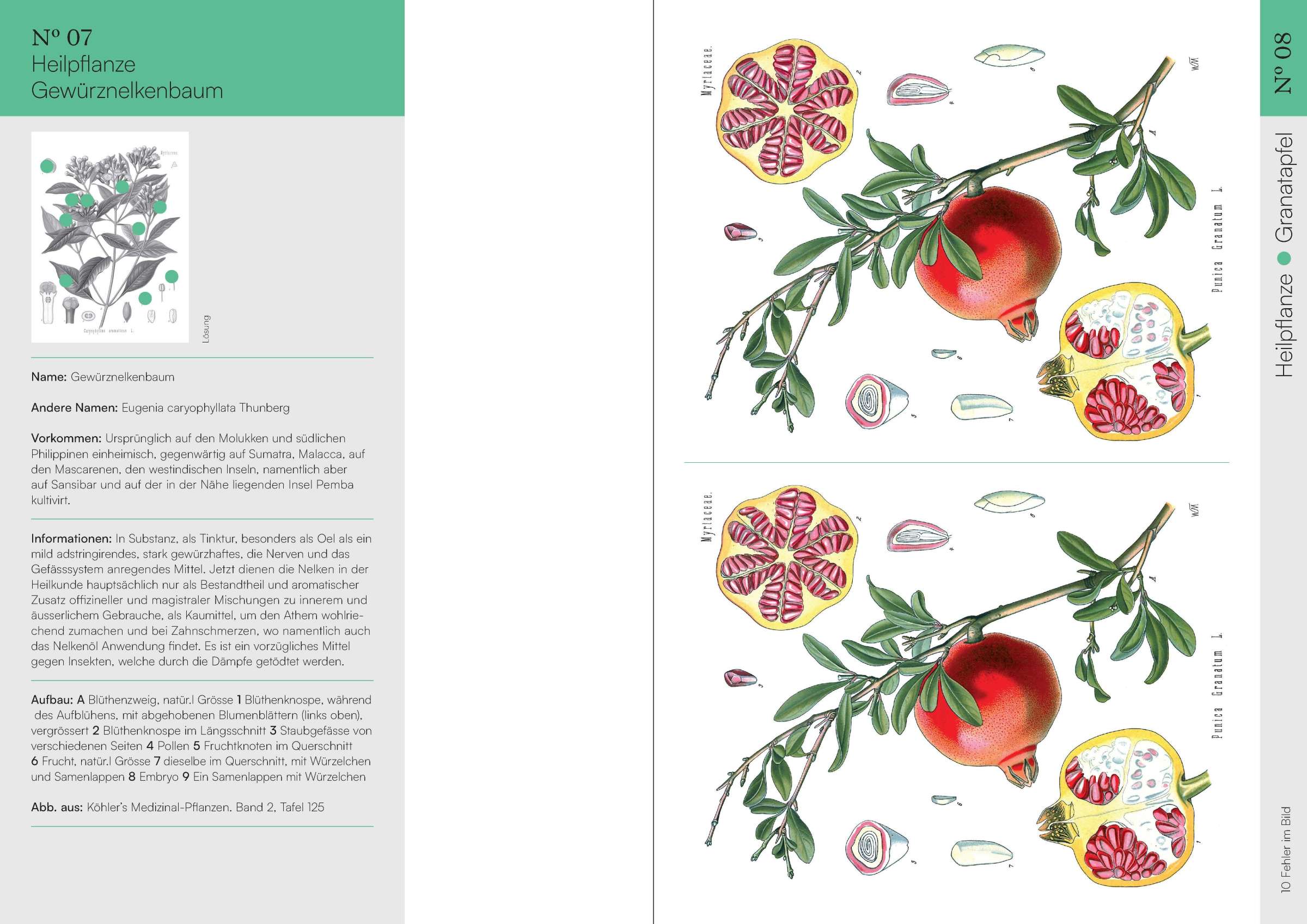- 50 Blätter mit botanischen Illustrationen, Bildbeschreibung und Informationen zu den abgebildeten Pflanzen