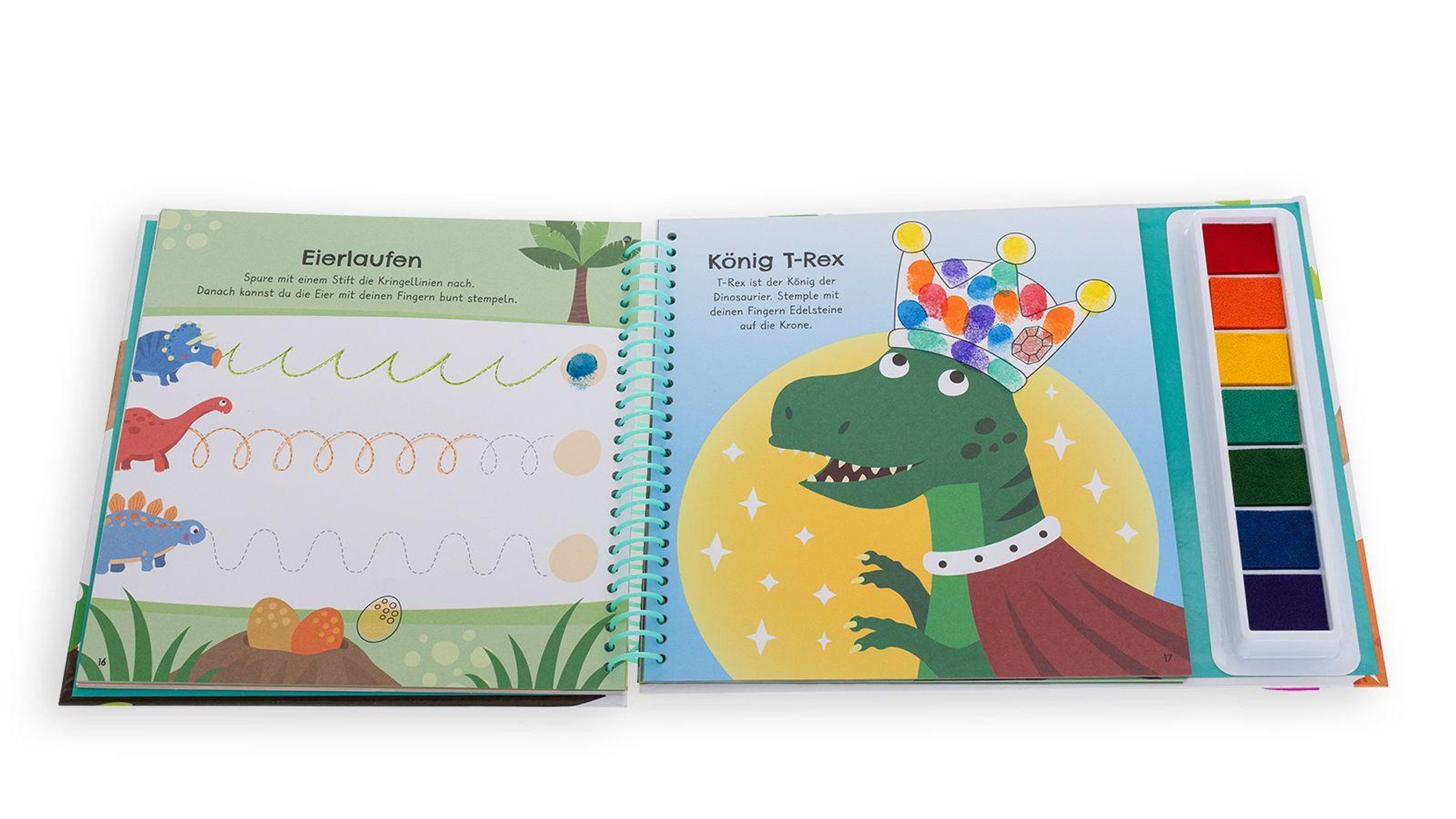 Dieses Set bietet eine bisher einzigartige Kombination aus Kreativität und Rätselspaß. Für Dino-Fans gibt es hier zahlreiche Lieblingsrätsel, die mit kunterbunten Fingerstempeln gelöst werden. Also nichts wie Finger eintauchen und losstempeln - sei es, um den Weg durchs Triceratops-Labyrinth zu finden oder die T-Rex-Fehlerbilder fertig zu stempeln. Zusätzlich werden mit den Fingern bunte Szenen gestaltet und Schritt-für-Schritt ganze Figuren geschaffen. Ideal für alle Kinder ab 5 Jahren!