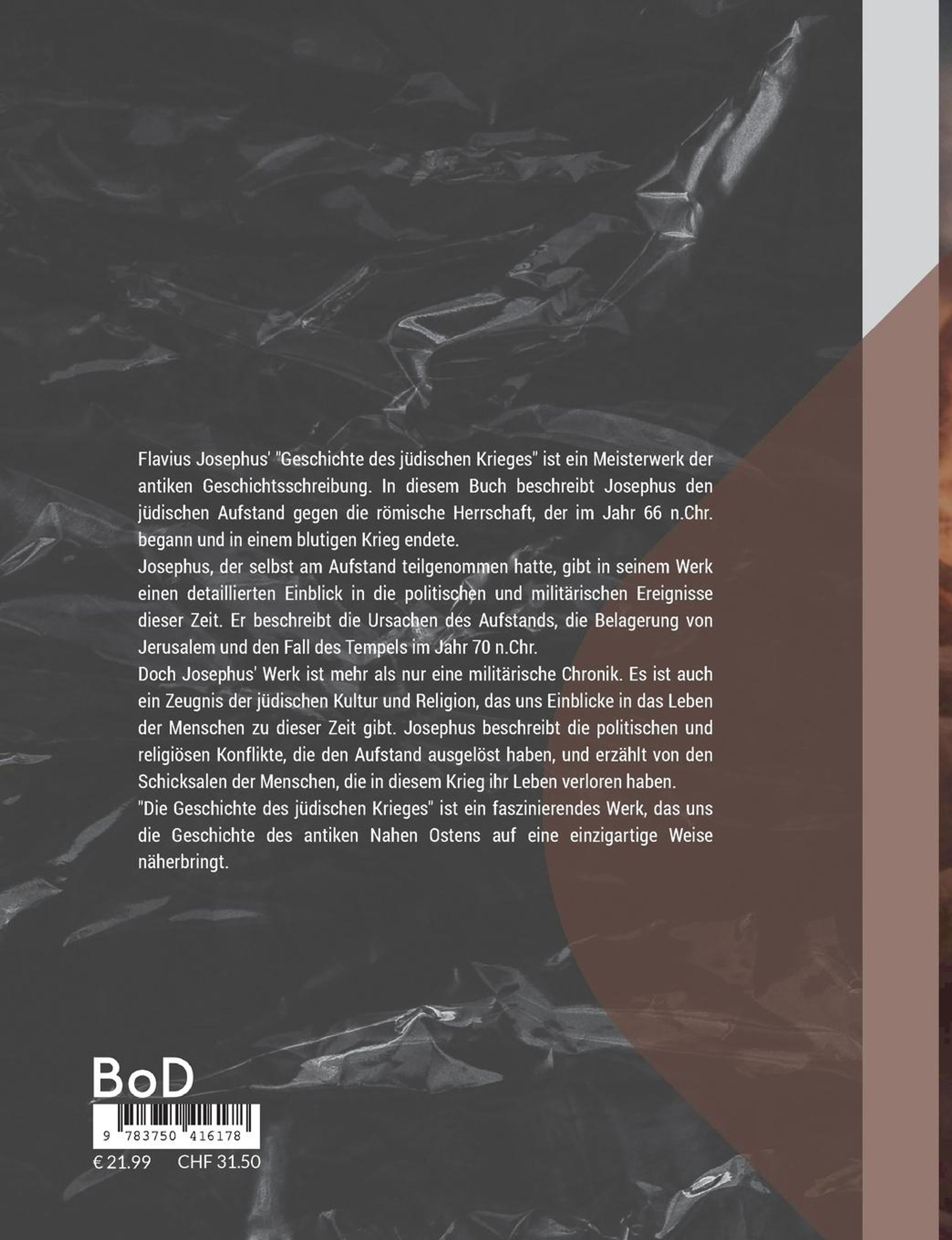 Flavius Josephus' "Geschichte des jüdischen Krieges" ist ein Meisterwerk der antiken Geschichtsschreibung. In diesem Buch beschreibt Josephus den jüdischen Aufstand gegen die römische Herrschaft, der im Jahr 66 n. Chr. begann und in einem blutigen Krieg endete. Josephus, der selbst am Aufstand teilgenommen hatte, gibt in seinem Werk einen detaillierten Einblick in die politischen und militärischen Ereignisse dieser Zeit. Er beschreibt die Ursachen des Aufstands, die Belagerung von Jerusalem und den Fall des Tempels im Jahr 70 n. Chr. Doch Josephus' Werk ist mehr als nur eine militärische Chronik. Es ist auch ein Zeugnis der jüdischen Kultur und Religion, das uns Einblicke in das Leben der Menschen zu dieser Zeit gibt. Josephus beschreibt die politischen und religiösen Konflikte, die den Aufstand ausgelöst haben, und erzählt von den Schicksalen der Menschen, die in diesem Krieg ihr Leben verloren haben. "Die Geschichte des jüdischen Krieges" ist ein faszinierendes Werk, das uns die Geschichte des antiken Nahen Ostens auf eine einzigartige Weise näherbringt.