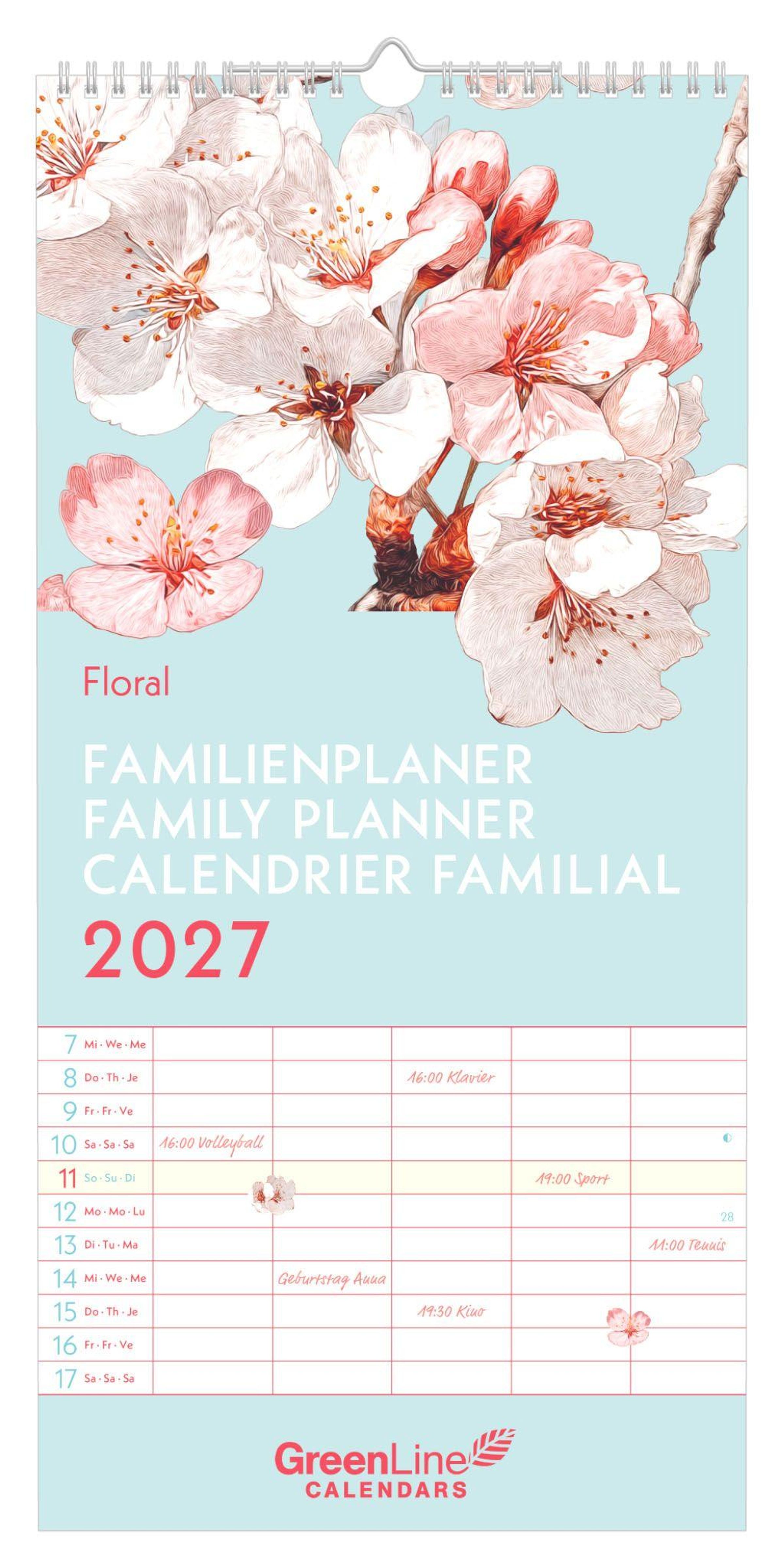 Mit dem GreenLine Floral Familienkalender 2027 behalten Familien alle Termine im Blick -- nachhaltig, dekorativ und praktisch zugleich.