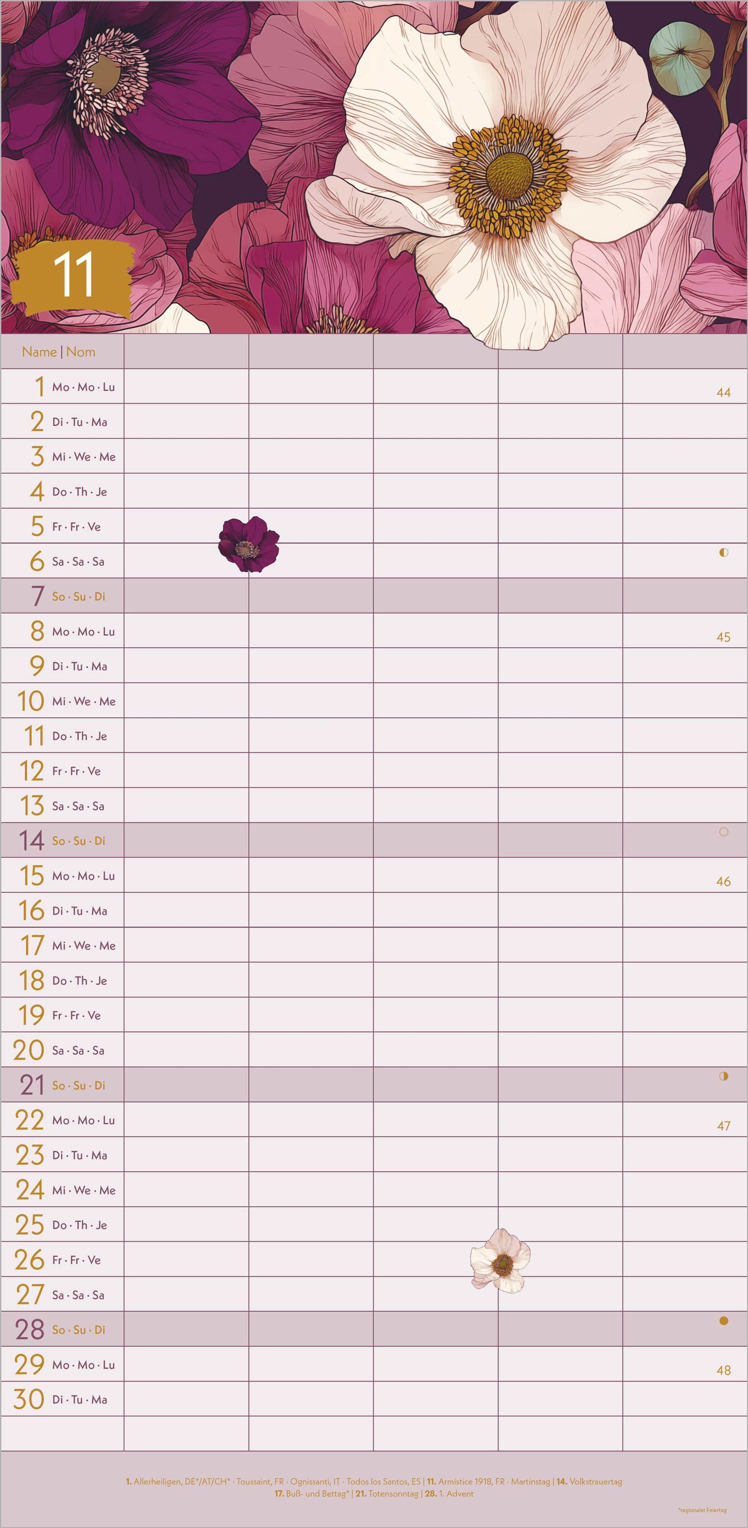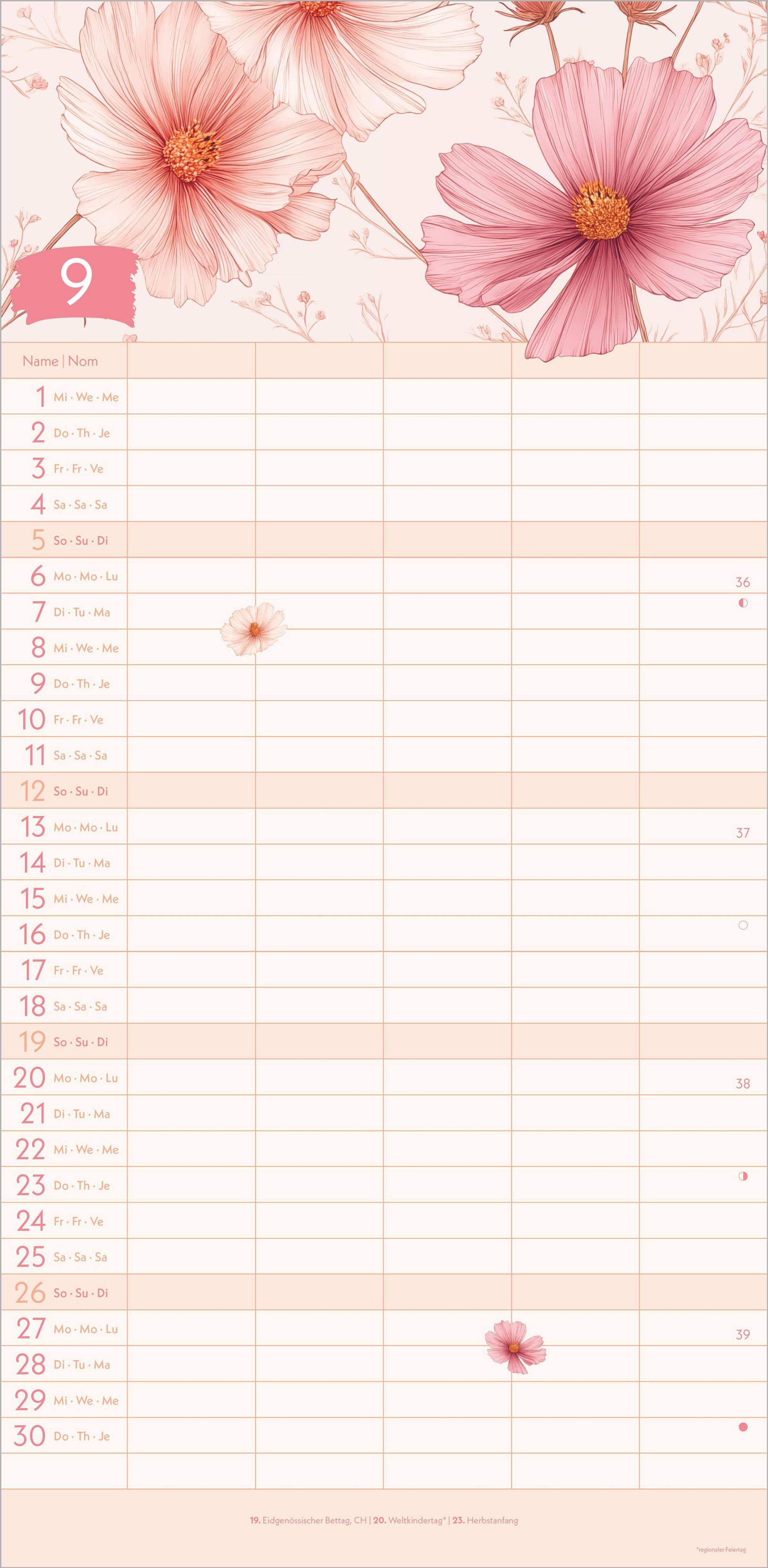 3-sprachiges Kalendarium (DE/EN/FR) -- mit Schulferienübersicht