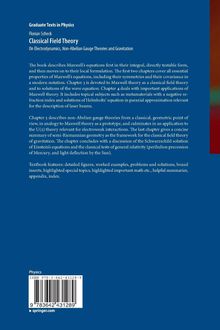 The book describes Maxwell's equations first in their integral, directly testable form, then moves on to their local formulation. The first two chapters cover all essential properties of Maxwell's equations, including their symmetries and their covariance in a modern notation. Chapter 3 is devoted to Maxwell theory as a classical field theory and to solutions of the wave equation. Chapter 4 deals with important applications of Maxwell theory. It includes topical subjects such as metamaterials with negative refraction index and solutions of Helmholtz' equation in paraxial approximation relevant for the description of laser beams. Chapter 5 describes non-Abelian gauge theories from a classical, geometric point of view, in analogy to Maxwell theory as a prototype, and culminates in an application to the U(2) theory relevant for electroweak interactions. The last chapter 6 gives a concise summary of semi-Riemannian geometry as the framework for the classical field theory of gravitation. The chapter concludes with a discussion of the Schwarzschild solution of Einstein's equations and the classical tests of general relativity (perihelion precession of Mercury, and light deflection by the sun).