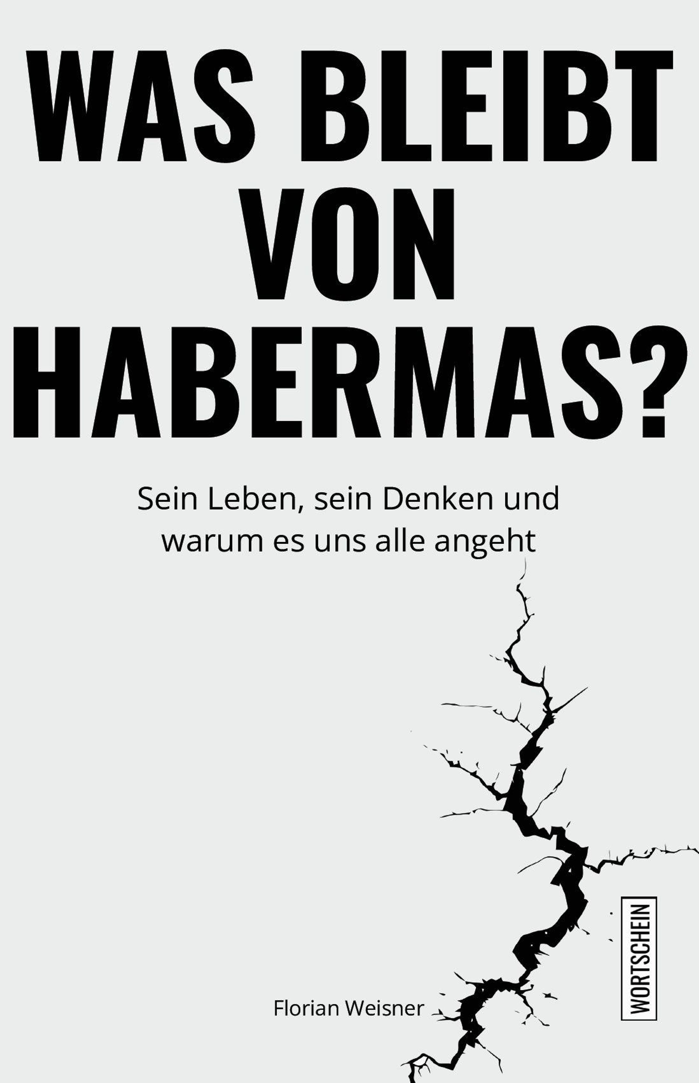 "Was bleibt von Habermas?" Darüber: "Sein Leben, sein Denken und warum es uns alle angeht". Unten: "Florian Weisner". Risszeichnung., Buch