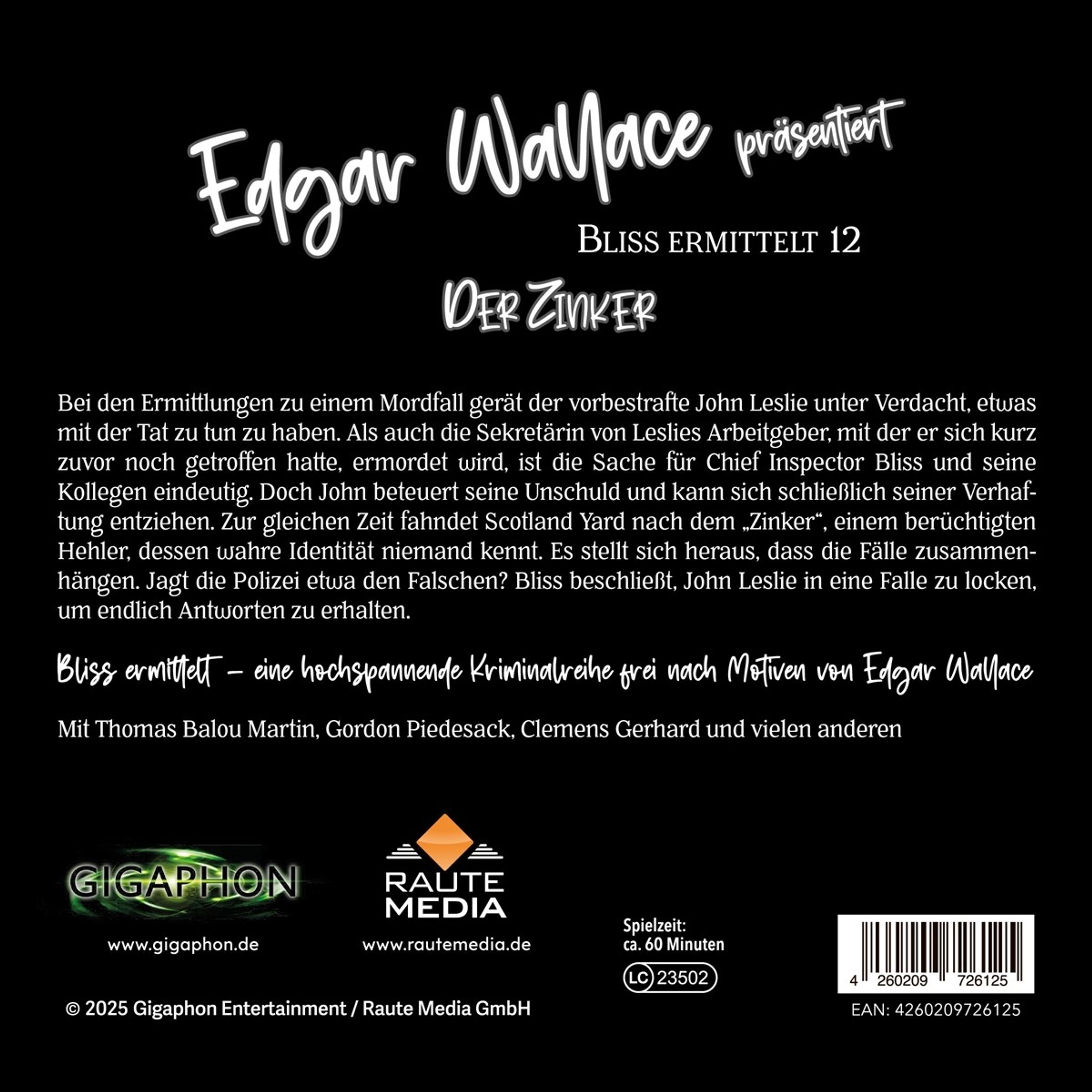 Edgar Wallace - Bliss ermittelt (12) Der Zinker (CD)