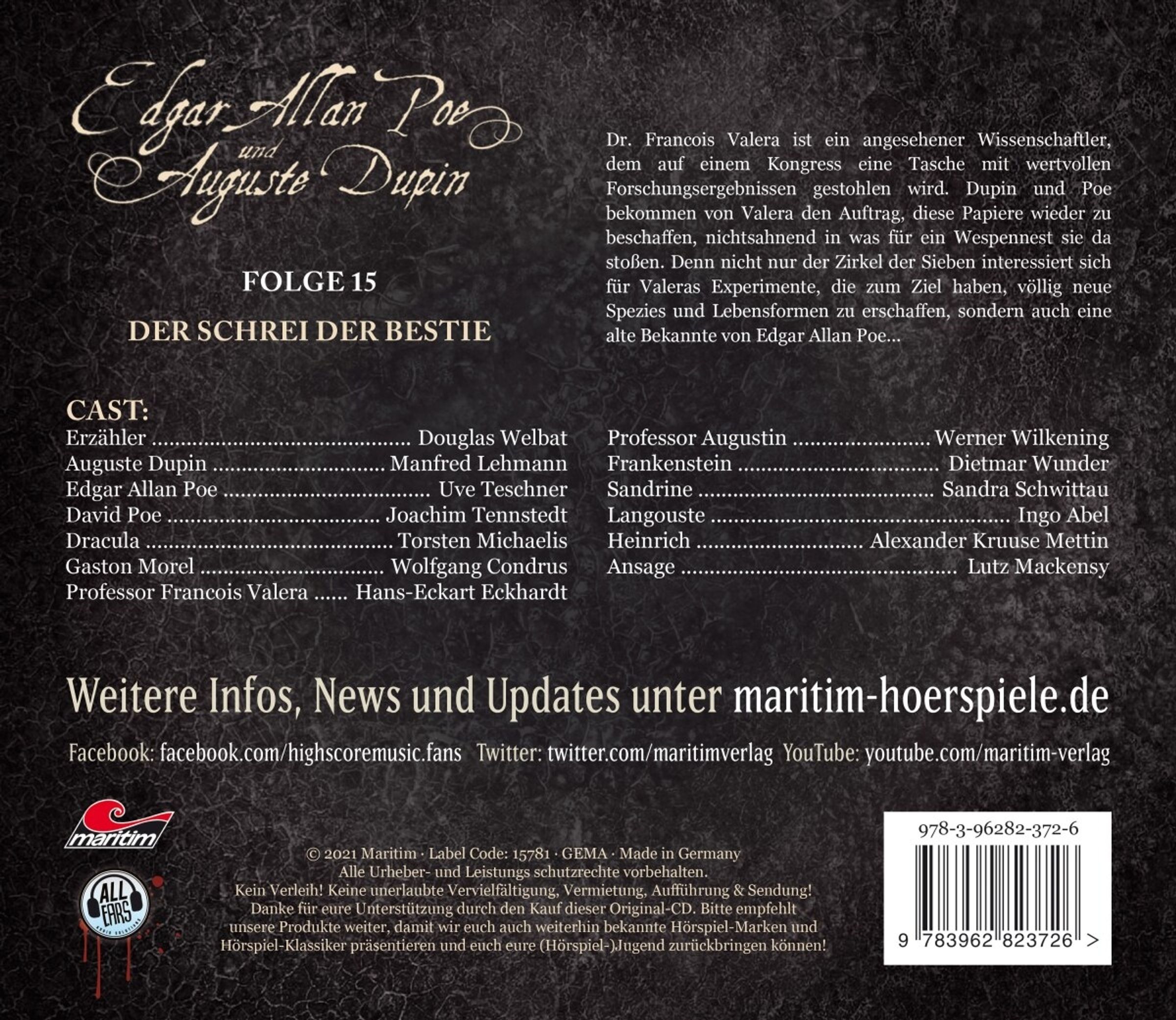 Edgar Allan Poe & Auguste Dupin (15) Der Schrei der Bestie (CD)