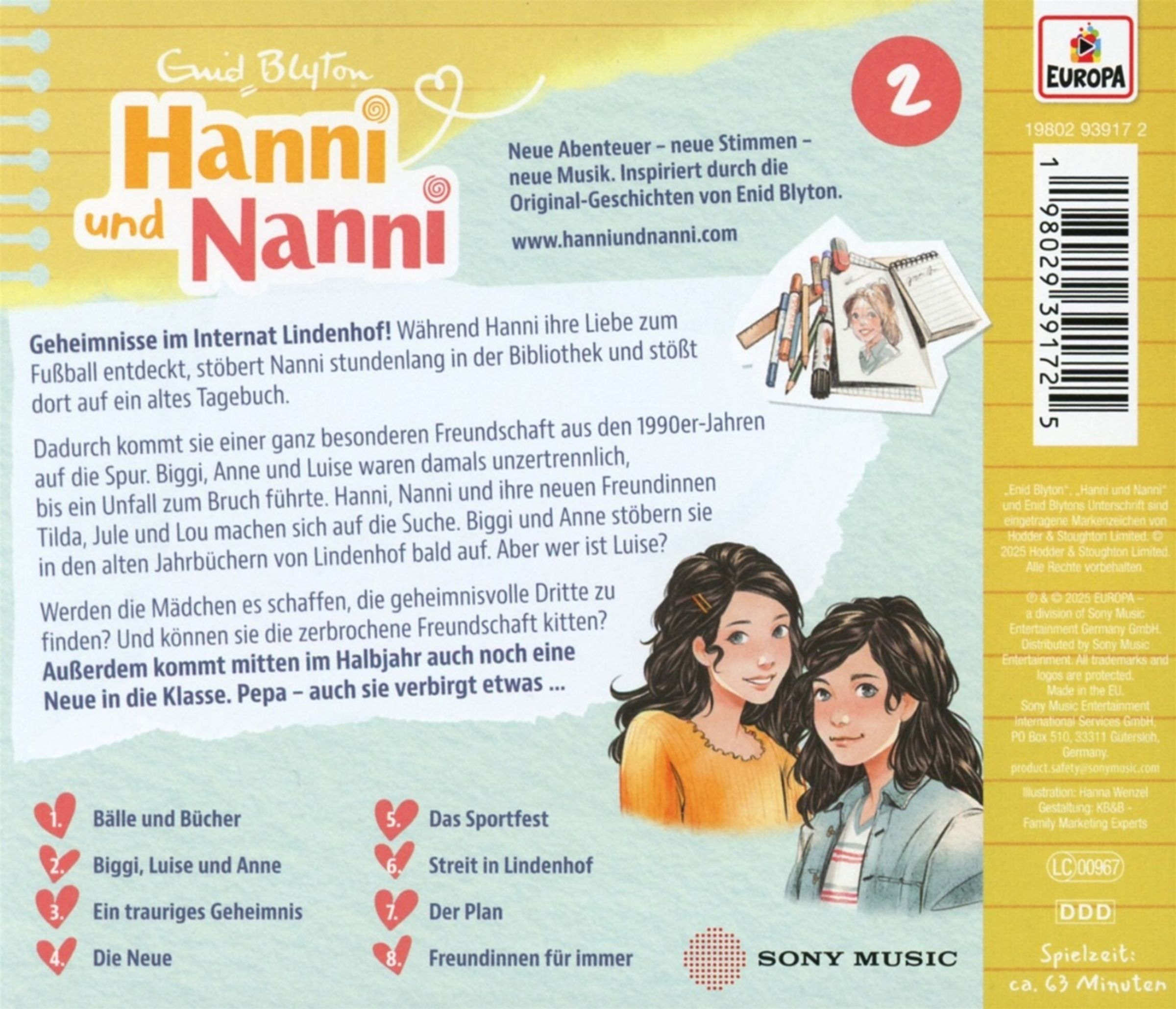 Geheimnisse in Internat Lindenhof! Während Hanni ihre Liebe zum Fußball entdeckt, stöbert Nanni stundenlang in der Bibliothek und stößt dort auf ein altes Tagebuch. Dadurch kommt sie einer ganz besonderen Freundschaft aus den 1990er Jahren auf die Spur. Biggi, Anne und Luise waren damals unzertrennlich, bis ein Unfall zum Bruch führte. Hanni, Nanni und ihre neuen Freundinnen Tilda, Jule und Lou machen sich auf die Suche. Biggi und Anne stöbern sie in den alten Jahrbüchern von Lindenhof bald auf. Aber wer ist Luise?