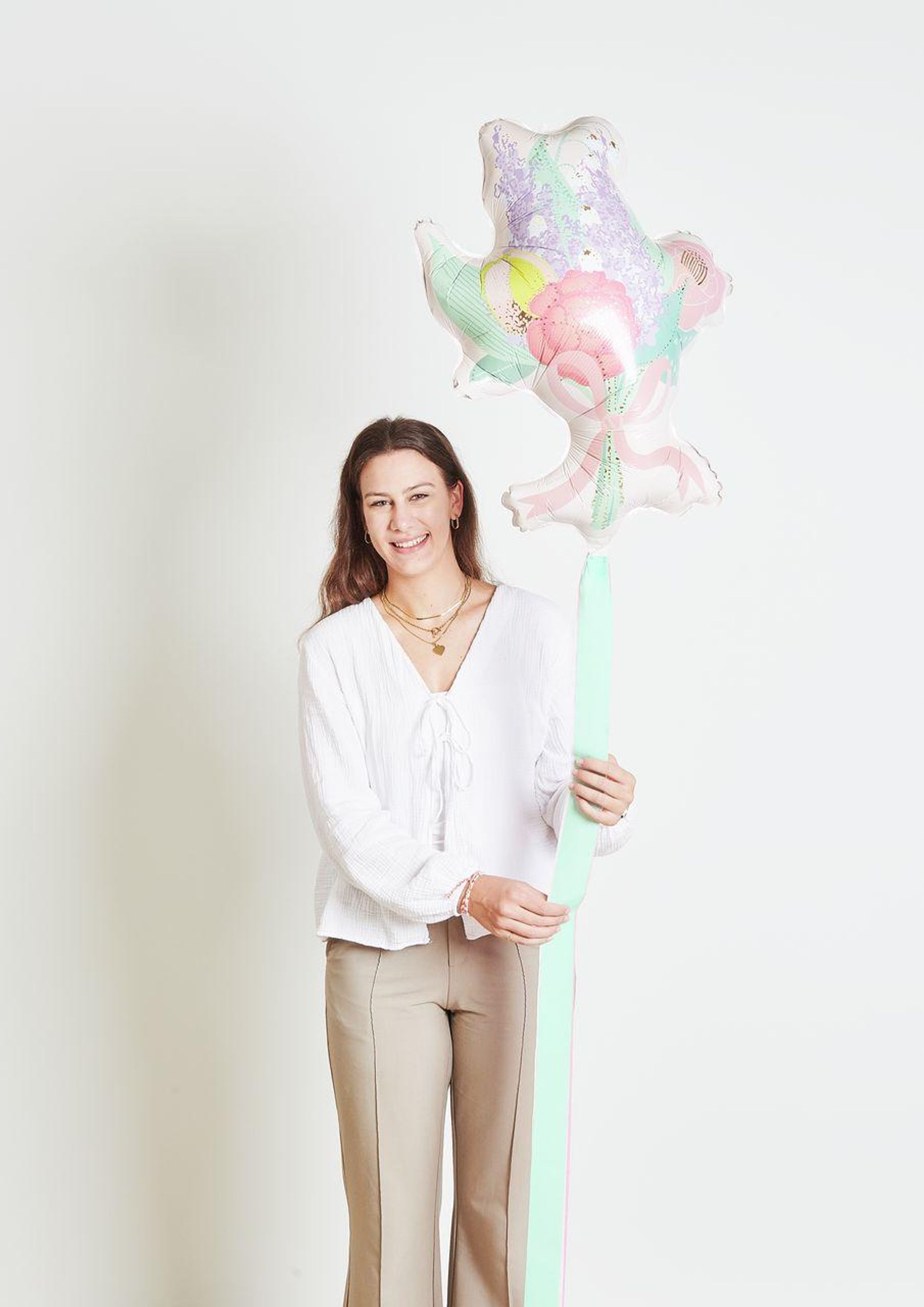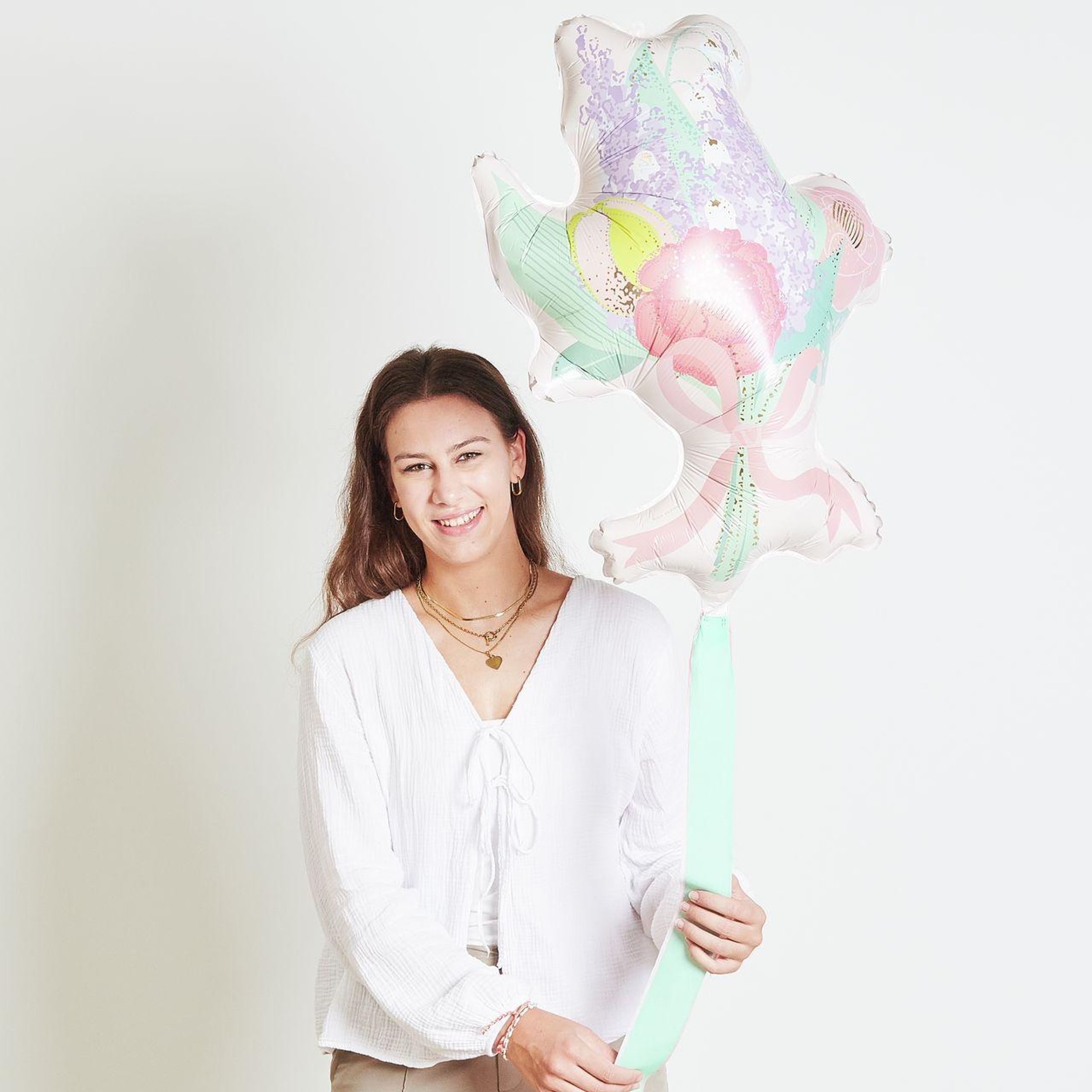 Der Folienballon "Blumenstrauß" ist für die Füllung mit Luft oder Helium geeignet. Er lässt sich mehrfach verwenden und ist damit eine nachhaltige Dekorationsmöglichkeit. Mit den Maßen 50 × 67 × 26 cm eignet sich der Ballon ideal für besondere Anlässe.