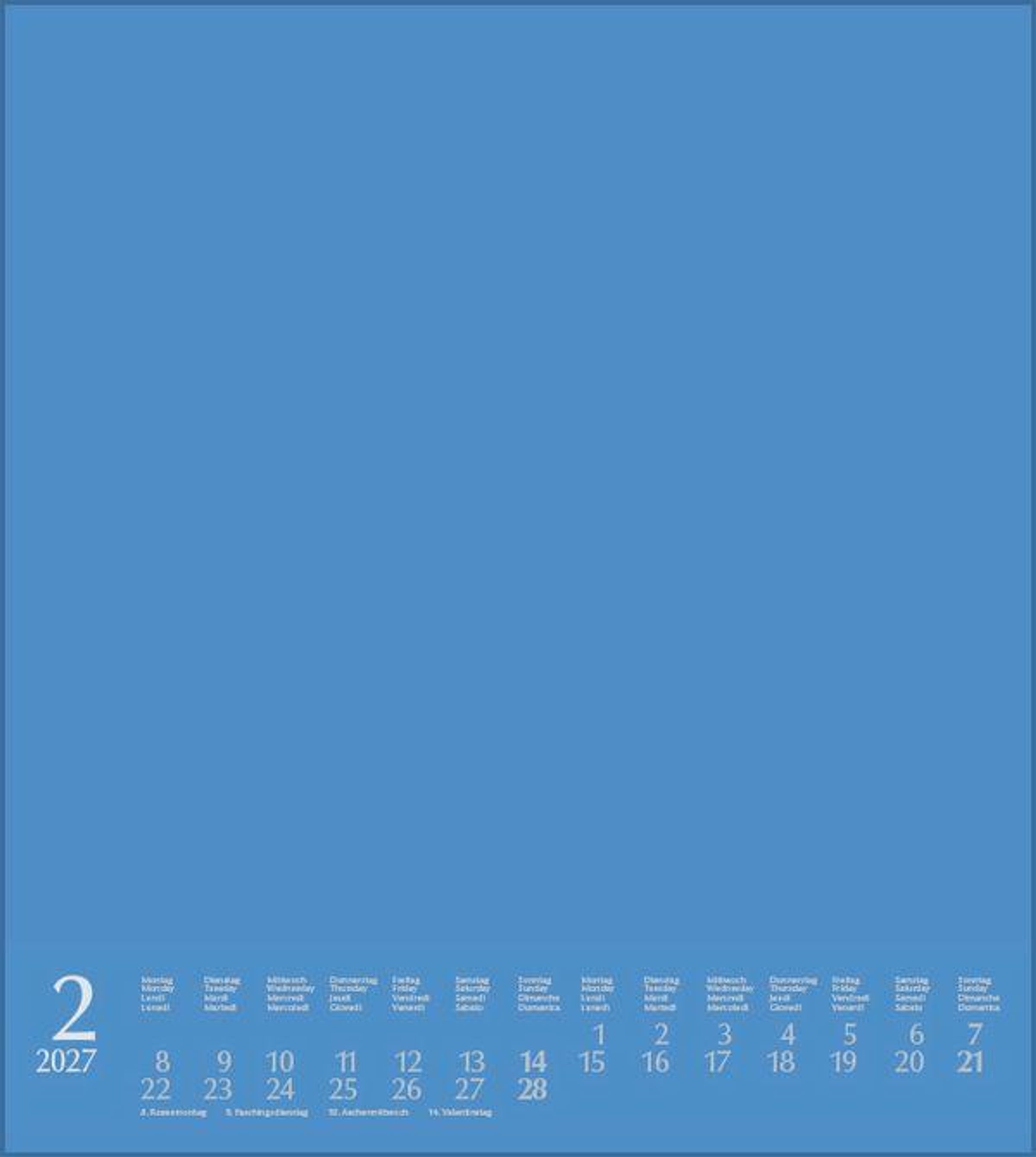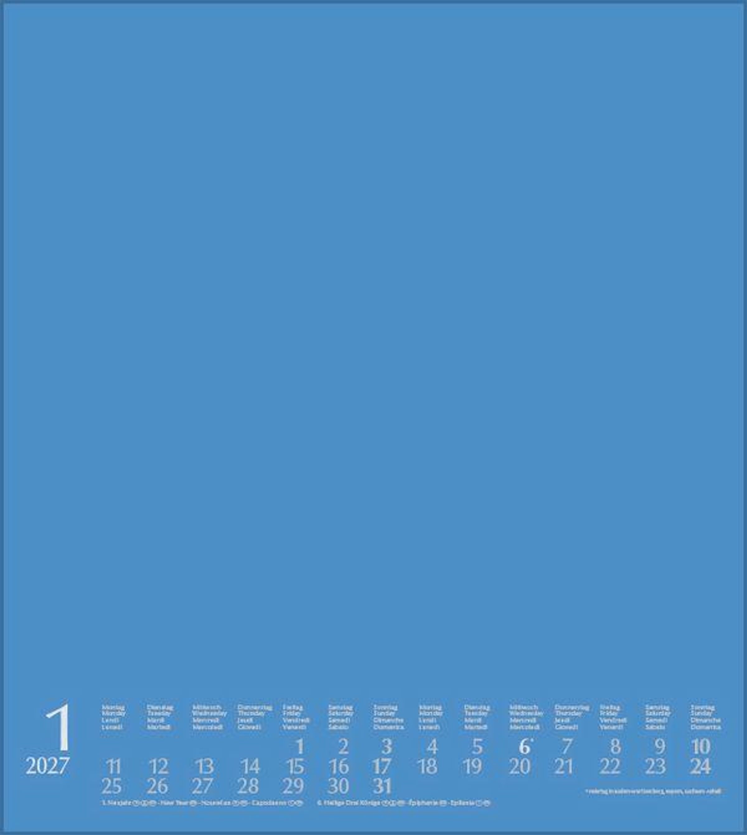 Mehrsprachiges Kalendarium mit Feiertagen für Deutschland, Österreich und Schweiz
