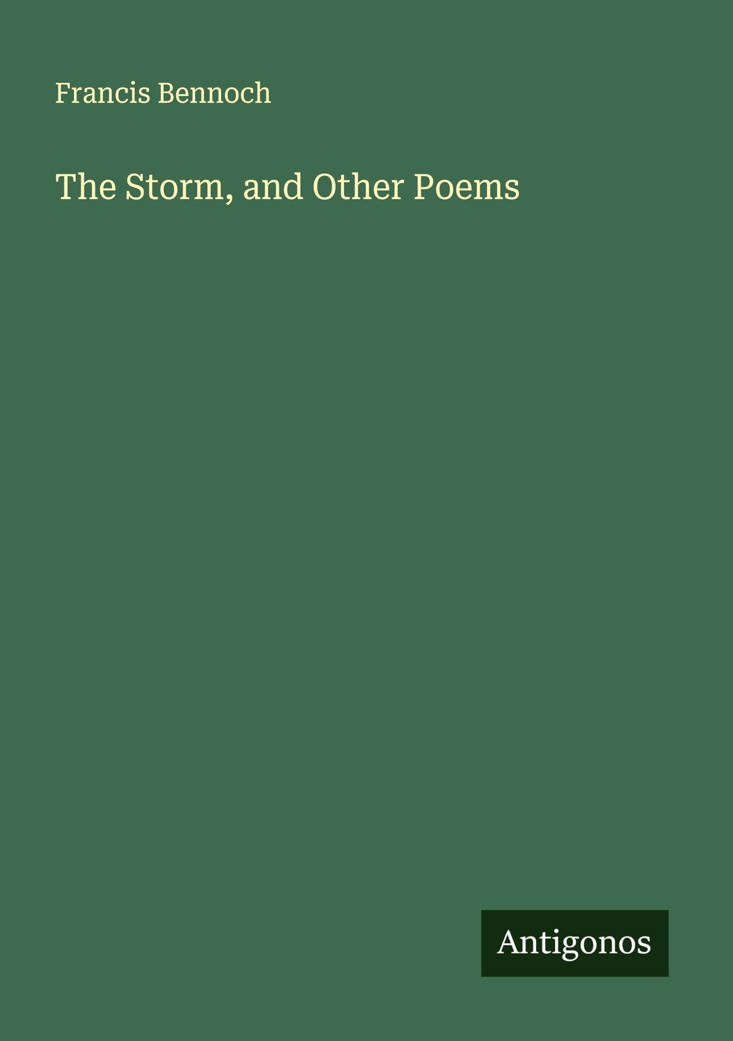 Oben steht "Francis Bennoch". Darunter "The Storm, and Other Poems". Unten rechts befindet sich "Antigonos"., Buch