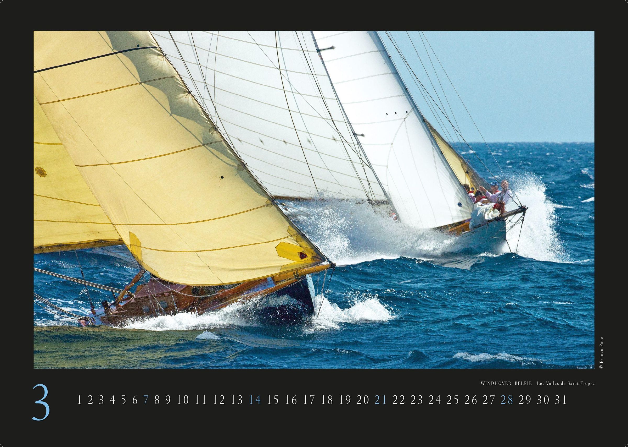 Der in Triest geborene Pace verschrieb sich voll und ganz der Segelsport-Fotografie. Für seinen luxuriös ausgestatteten großformatigen Kalender hat Franco Pace selbst eine Auswahl seiner fotografischen Meisterwerke zusammengestellt. Das exklusive Design verleiht den Hochglanz-Aufnahmen auf mattschwarzem Fond einen wirkungsvollen Rahmen, der nicht nur Foto-Enthusiasten fasziniert.