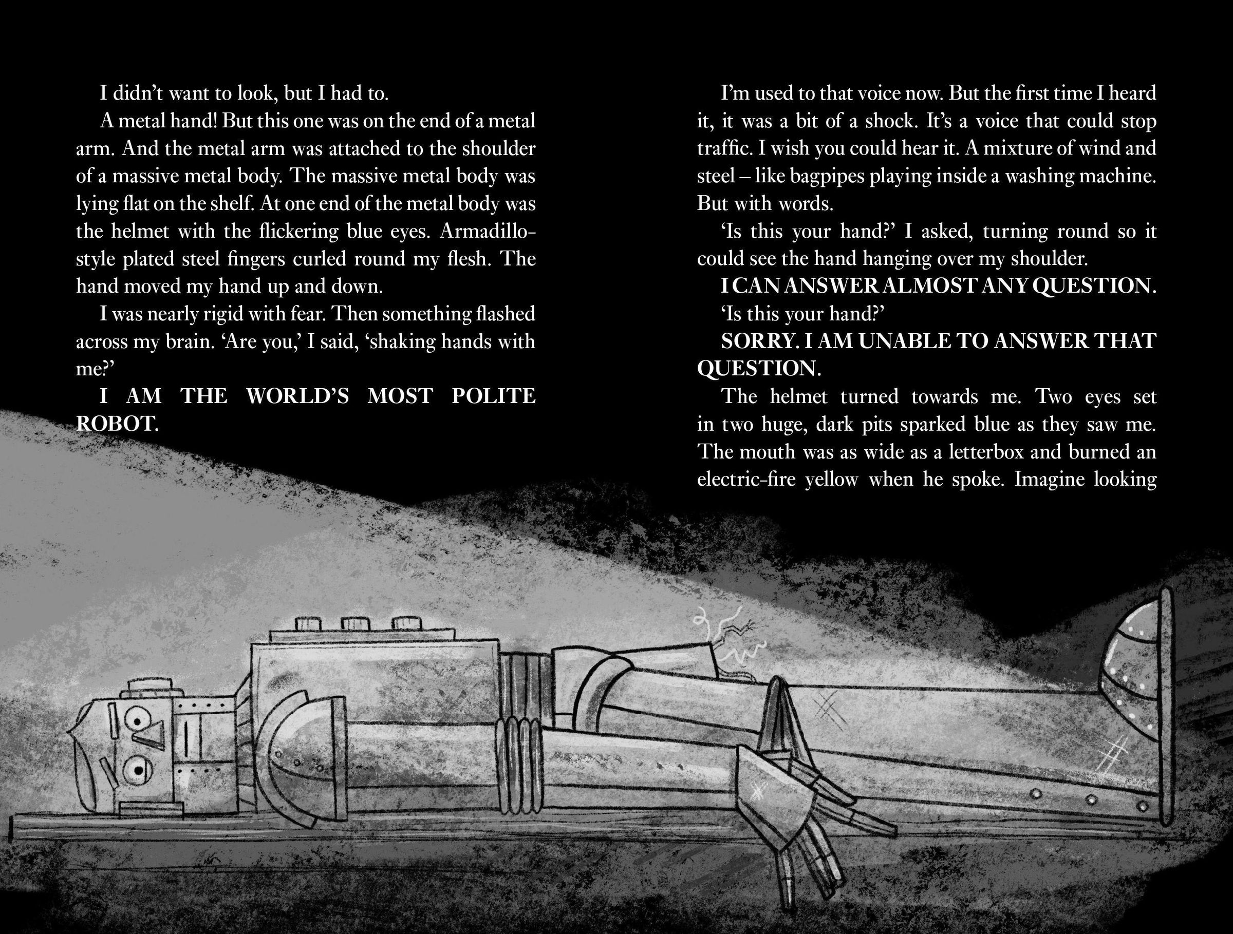 When Alfie goes to Airport Lost Property, he finds more than he bargained for. A lot more. Because there's a giant robot called Eric hidden away on the shelves. Eric has lost one leg and half his memory. He's super strong, but super clumsy. He's convinced that he's the latest technology, when he's actually nearly one hundred year's old and ready for the scrap heap.