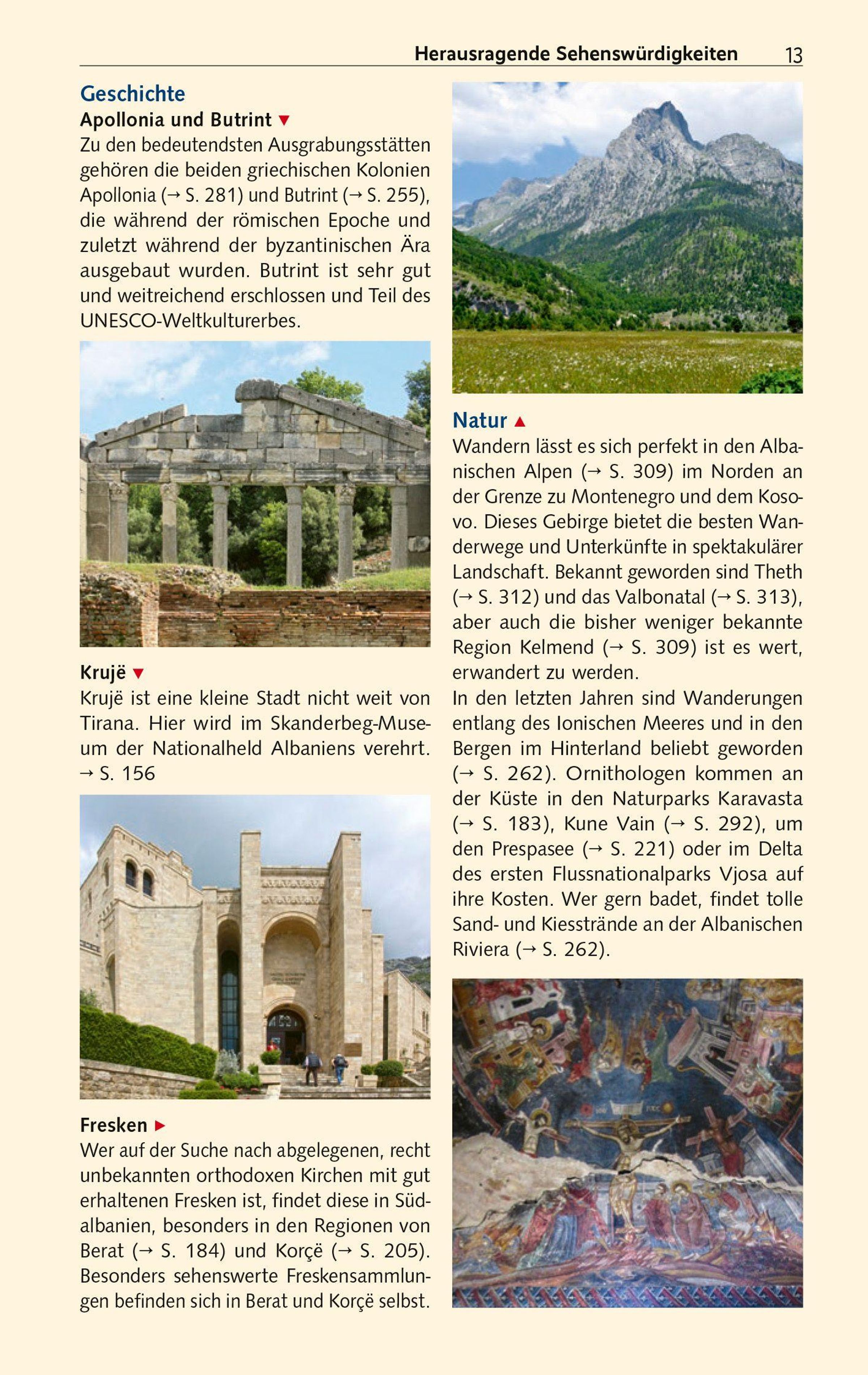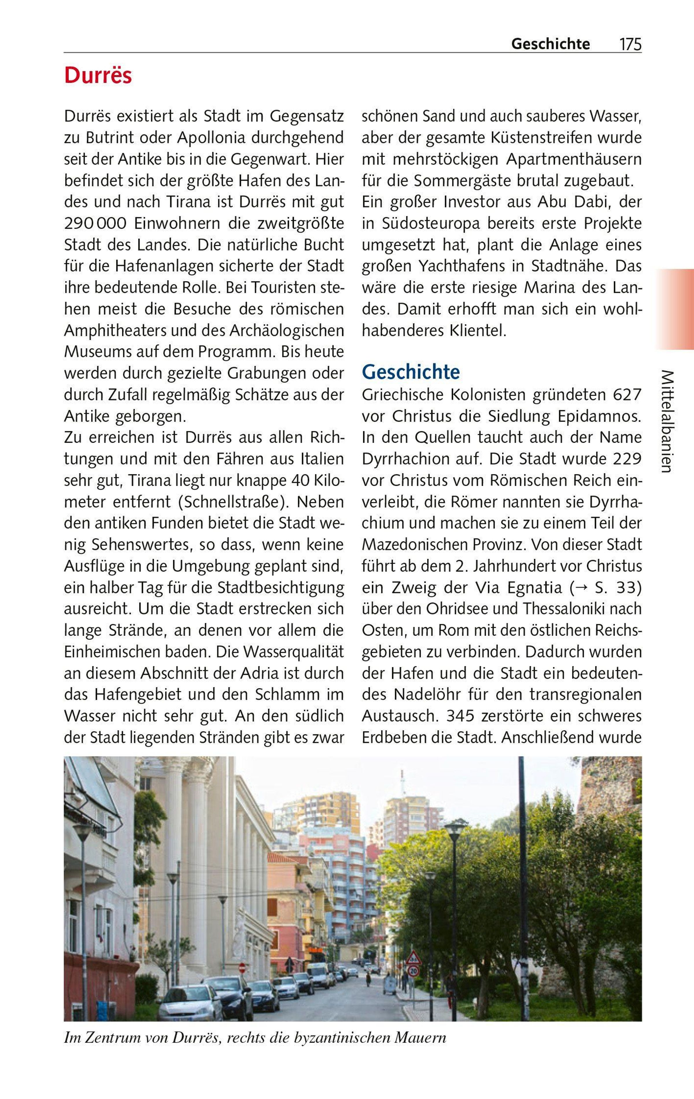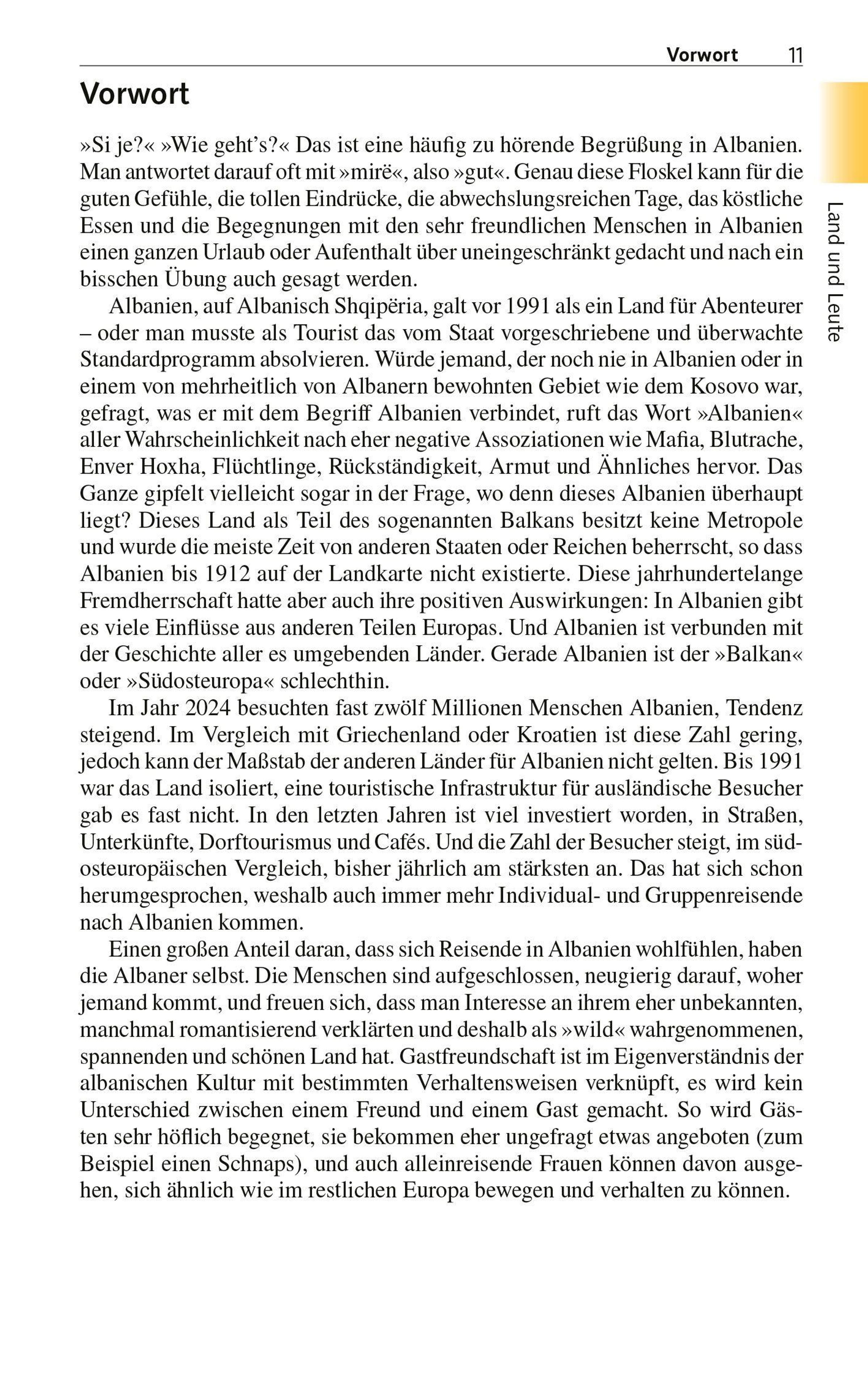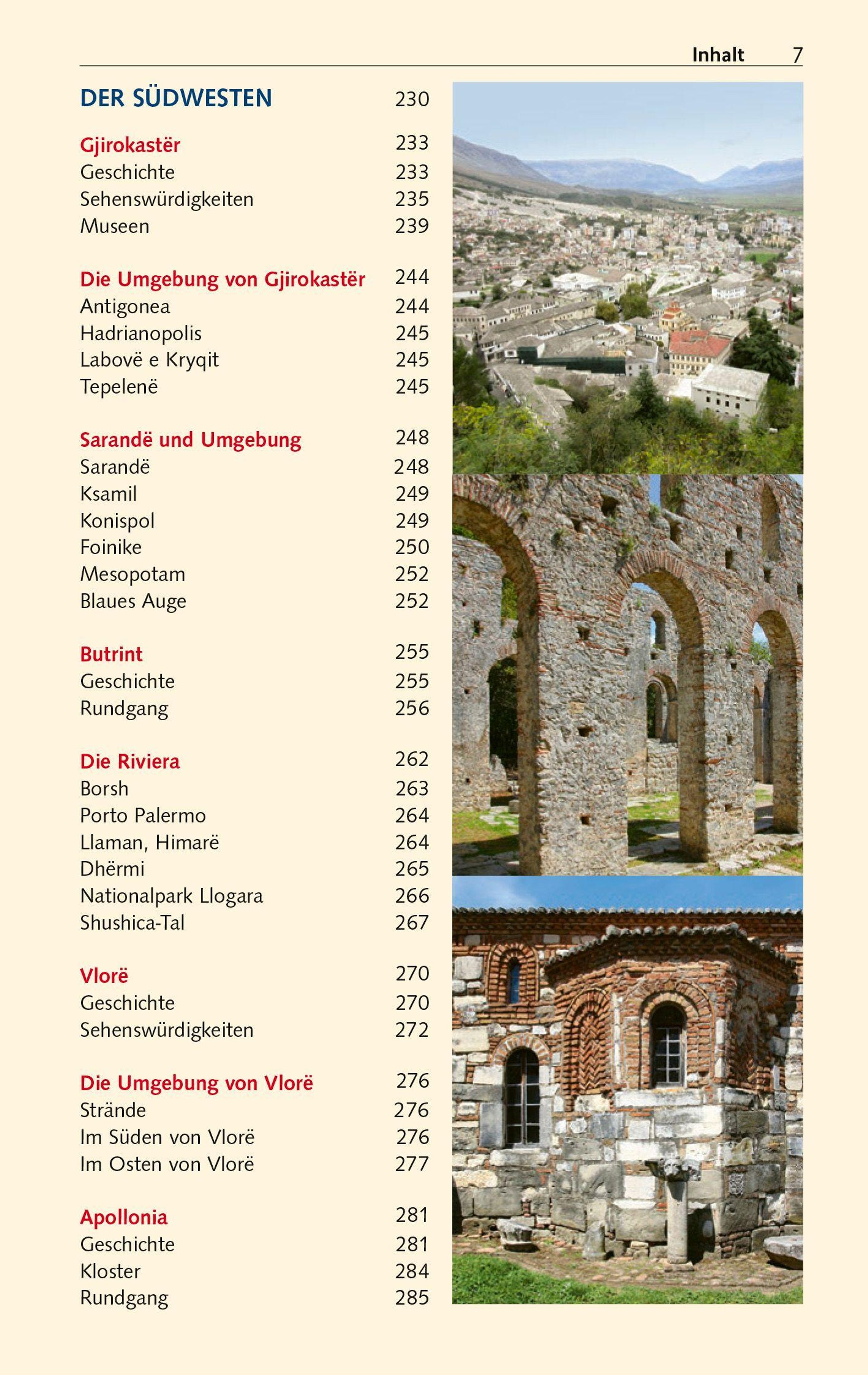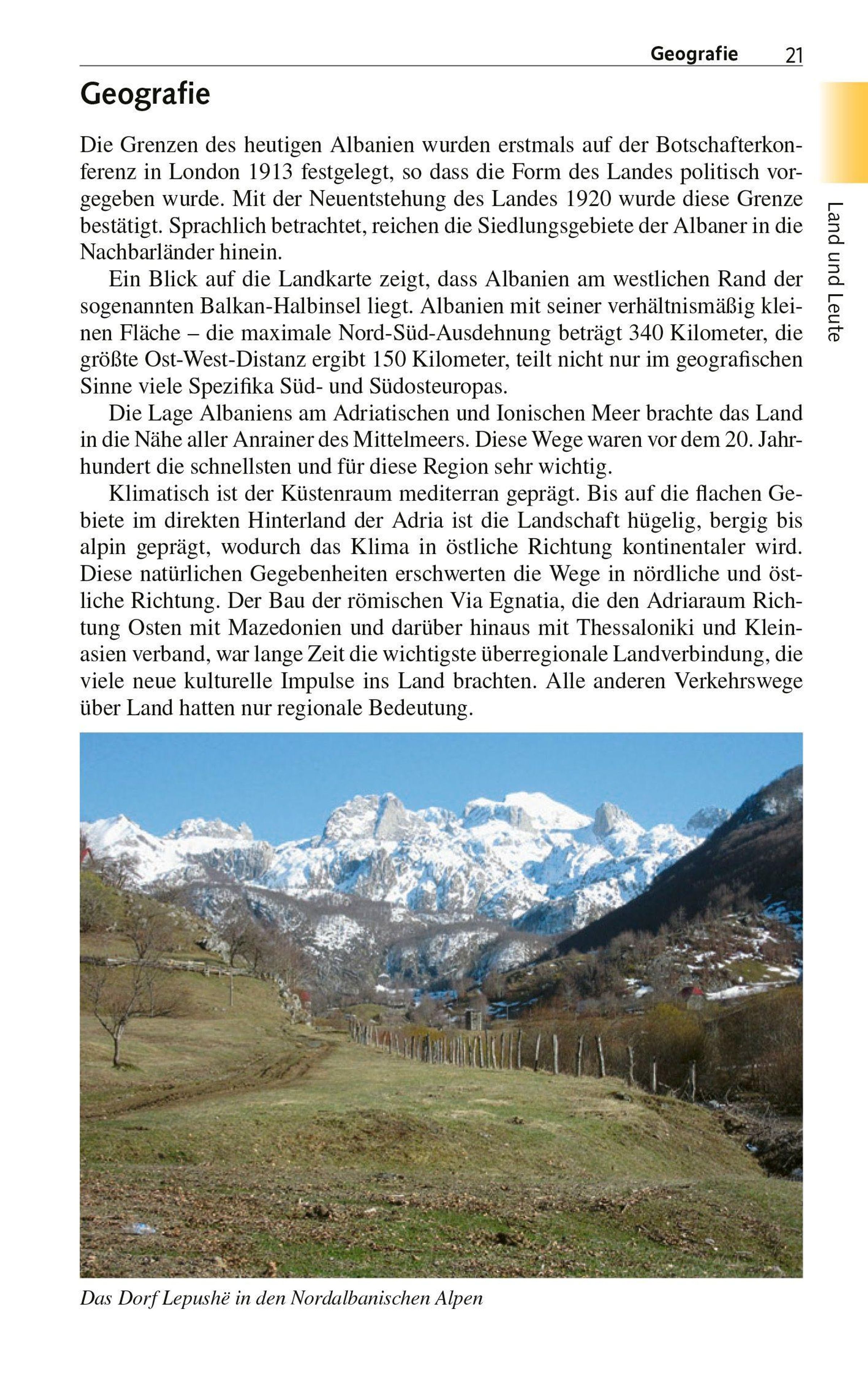 Der in Tirana gebürtige Autor und Reiseleiter Shkëlzen Alite kennt jeden Winkel im Land. In diesem Reiseführer gibt er tiefen Einblick in Albaniens Naturschönheiten, die Landesgeschichte, seine Traditionen und Lebensart und macht mit allen Sehenswürdigkeiten ausführlich bekannt. Von der Antike bis zur kommunistischen Ära hat jede Epoche ihre Spuren hinterlassen. Festungen und Burgruinen zeugen von der illyrischen, römischen, byzantinischen und osmanischen Vergangenheit. Ausgrabungsstätten wie Apollonia und Butrint zählen zum UNESCO-Welterbe. Ebenso die Städtchen Berat und Gjirokastër, die mit Häusern in typischer Balkanarchitektur, Kirchen, Moscheen und einer Burg steil auf dem Berghang bezaubern. Die Hauptstadt Tirana erfreut mit lebhaft-buntem Metropolen-Flair.