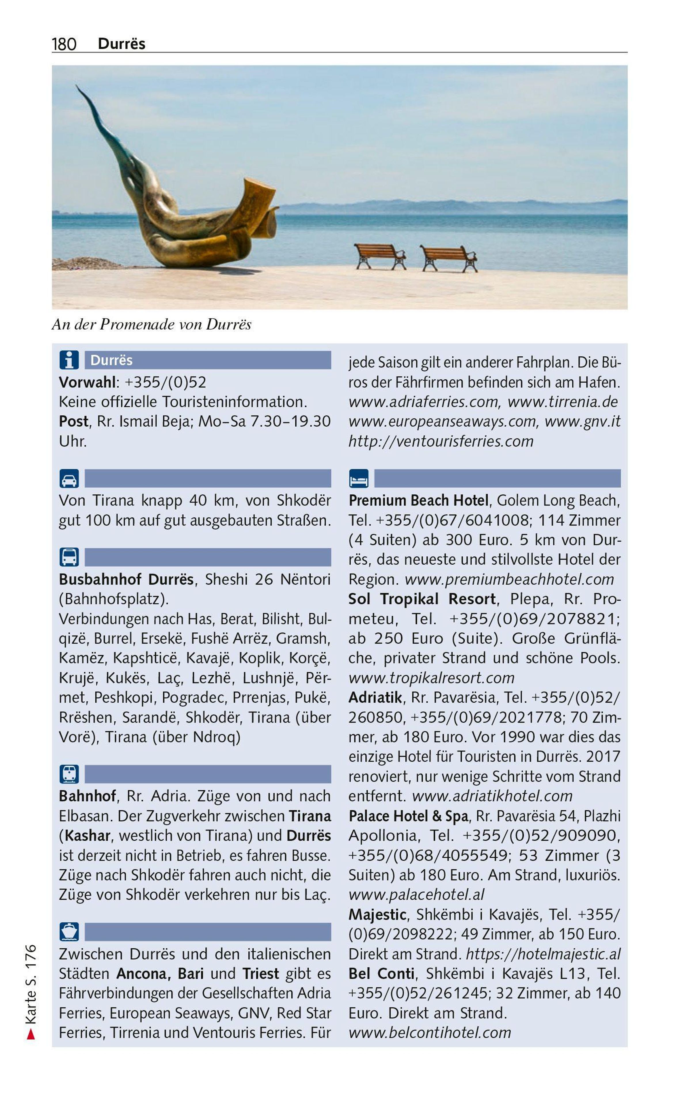 Der Trescher-Reiseführer ALBANIEN widmet sich allen natürlichen, historischen und kulturellen Sehens- und Erlebenswürdigkeiten des Landes, auch in den vom Tourismus noch weitgehend unentdeckten Regionen. Hintergrundinformationen und Exkurse bieten viel Wissenswertes zu Land und Leuten, Kunst und Kultur. In einem Extra-Kapitel werden die vielfältigen Wandermöglichkeiten beschrieben. Ergänzt um eine Fülle an aktuellen Tipps zu Anreise, Unterkunft, Restaurants und Freizeitaktivitäten, dazu Übersichtskarten und Stadtplänen, ist dieses Buch schon bei der Urlaubsplanung wie auch vor Ort ein unverzichtbarer Weggefährte.
